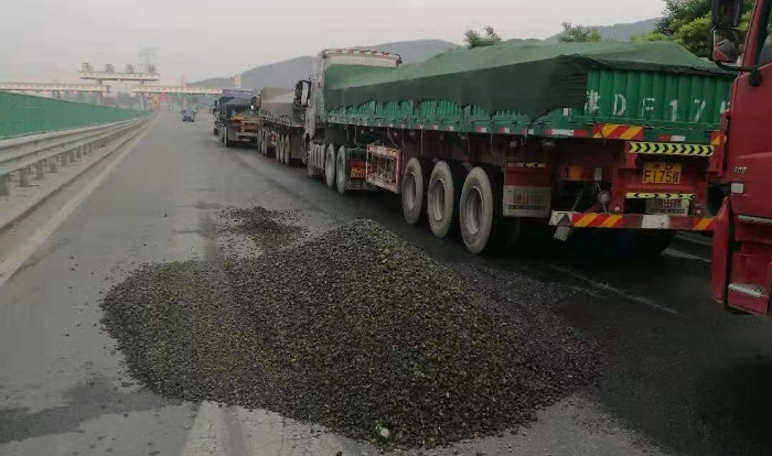 值班人员迅速安排养护工和车辆赶往现场。到达现场后,专人负责疏导车辆通行,并按要求规范摆放好施工安全标志牌。养护工们拿上铁锹、扫帚迅速清里石子。经过40分钟的奋力清扫,车道内的碎石子被全部清理完毕,路面恢复如初。