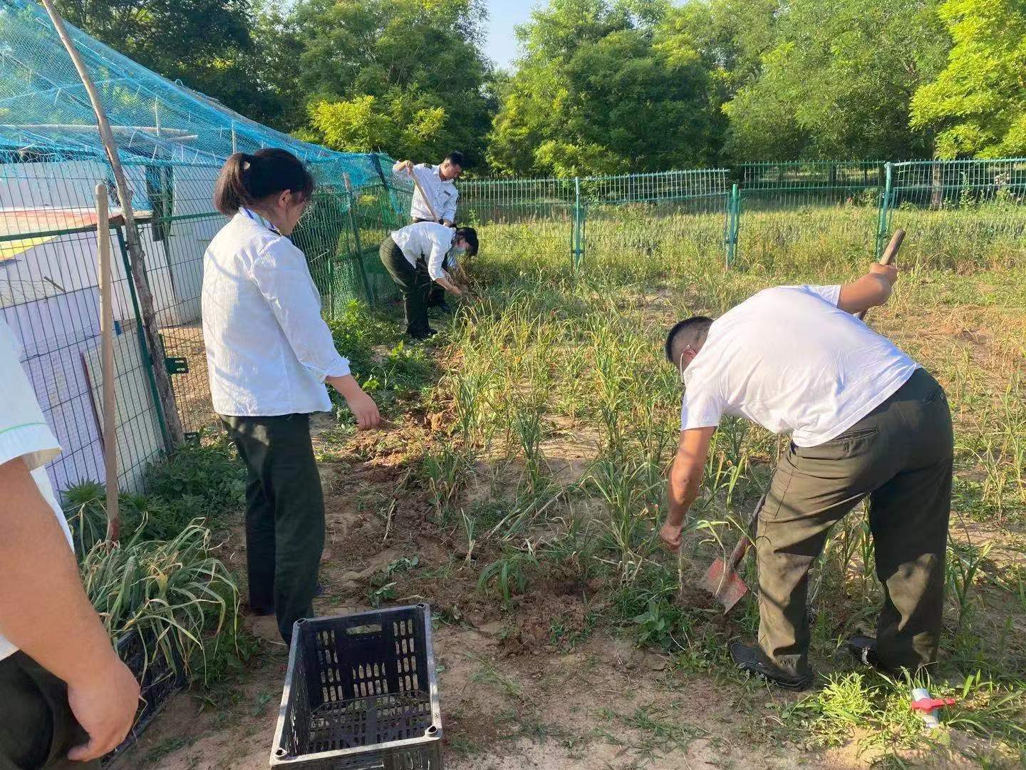 炎炎烈日下,小菜园中人头攒动,欢声笑语,职工们对成熟的大蒜,蒜苔等有机蔬菜及时采摘,端上职工餐桌。既节约了食堂成本,丰富了职工餐桌,也让职工品尝到绿色鲜香、耕耘收获的喜悦,吃的安全又健康,提升职工满足感和幸福感。