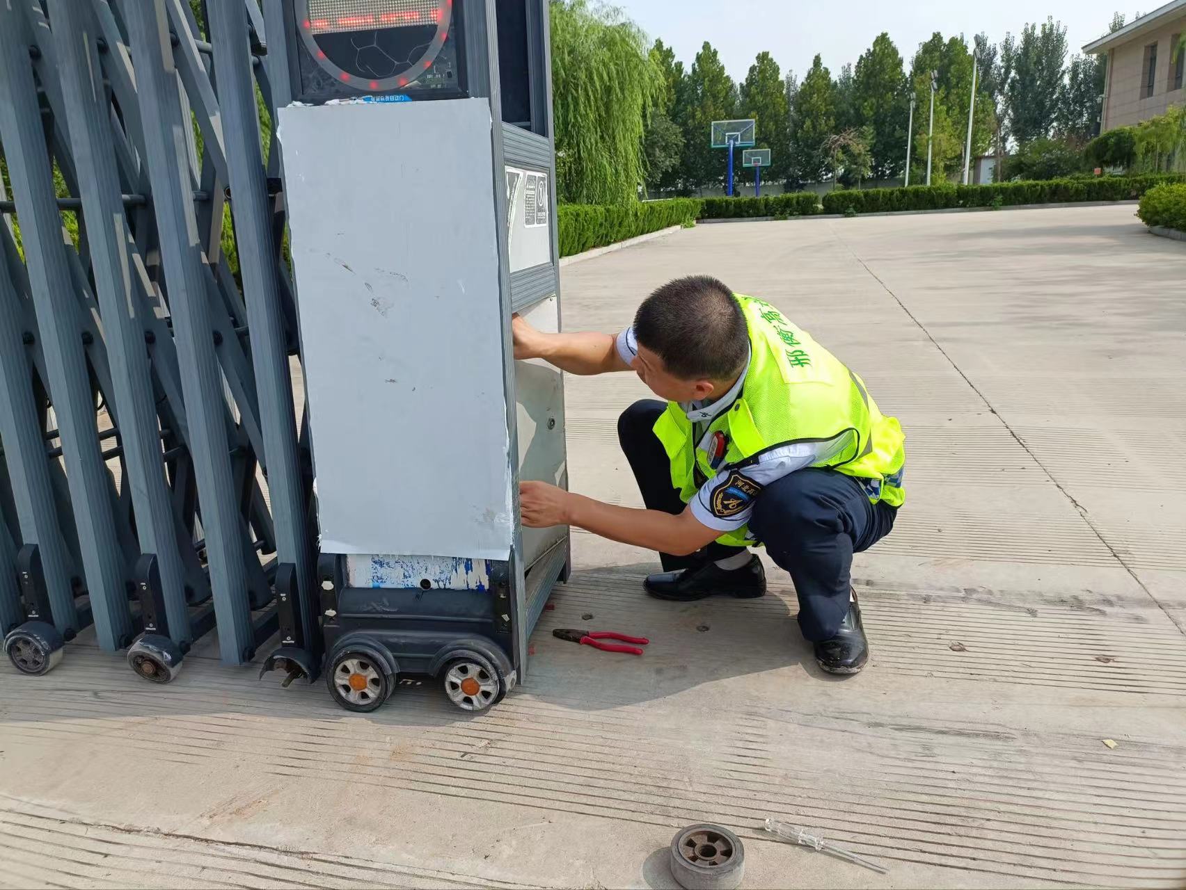 8月9日,衡水西站安全员接到职工反映站区大门口的无轨门移动受阻,已影响正常使用,且存在安全隐患。站领导高度重视,本着“自主维修、降本增效”的原则,迅速组织人员对无轨门进行维修。