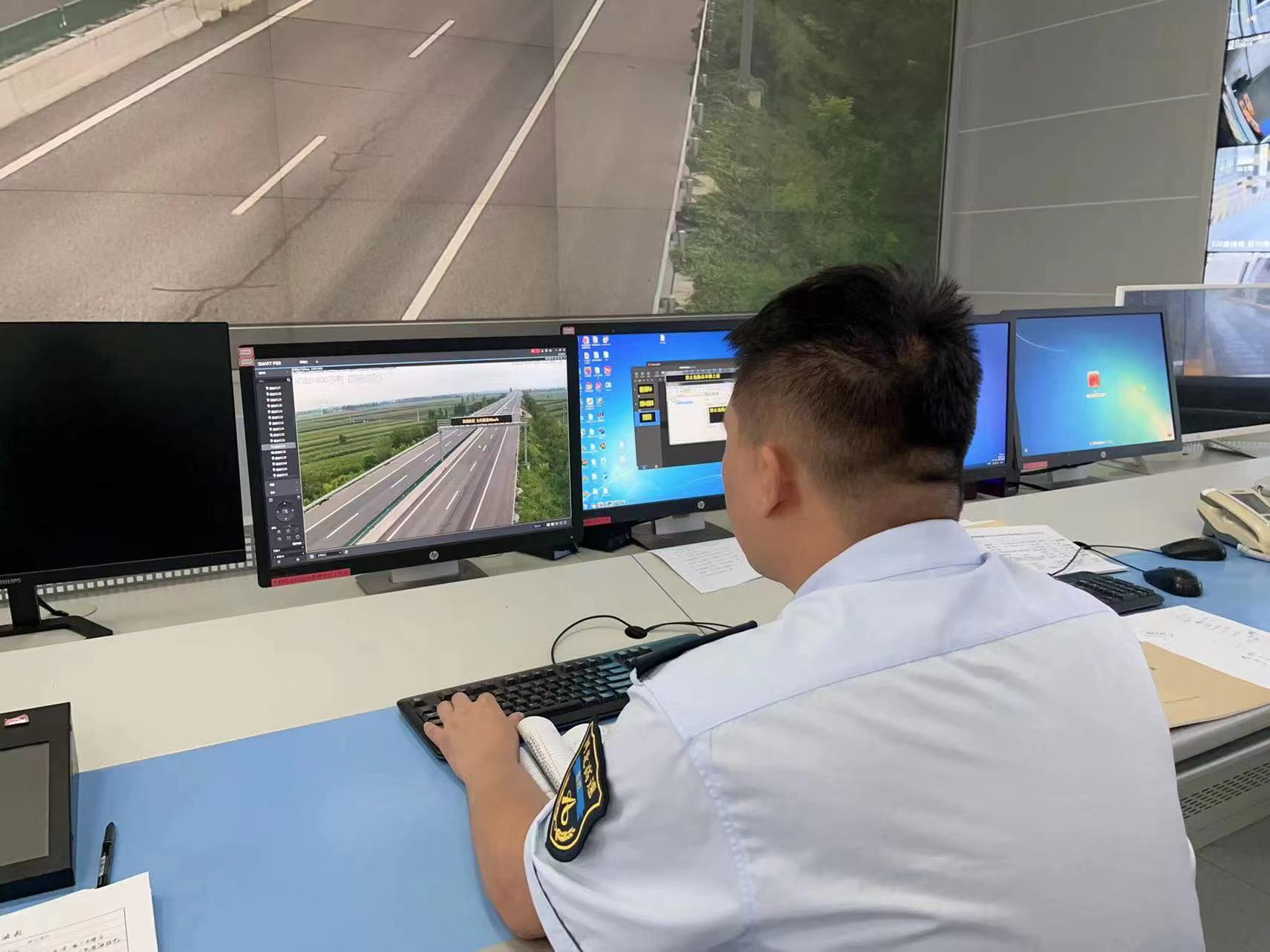 二是加强防汛巡查。提前协调相关人员对路段排水通道进行检查疏通。降雨期间,监控人员利用道路监控系统对路段降雨情况、路上存水量,边坡等进行巡查,发现问题及时通知相关部门进行处置。