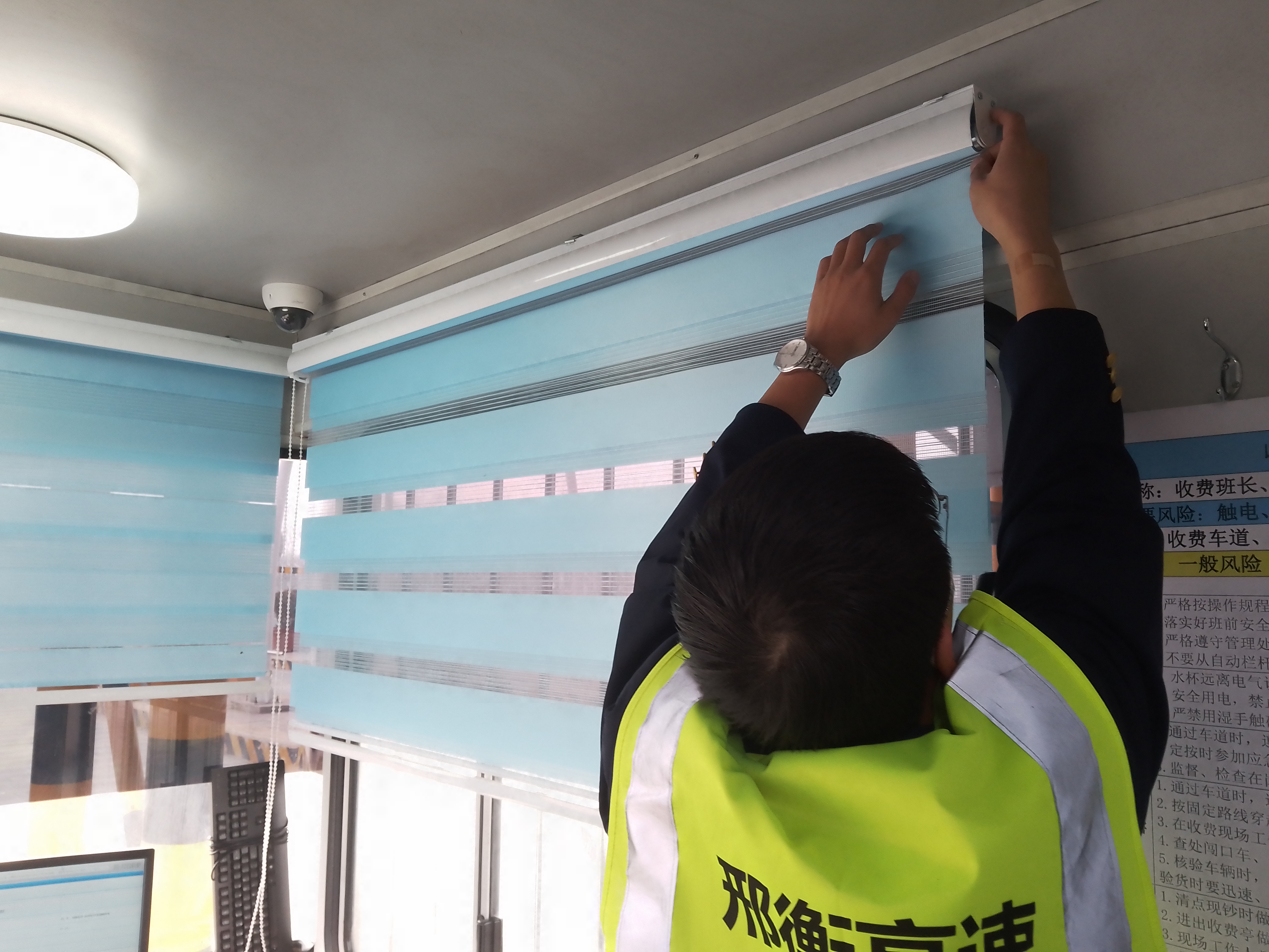 1月4日,冀州西收费站安全员接到职工反应窗帘出现了故障,不能正常打开,对收费员岗上作业造成了不便。安全员立即对其进行“检修”,发现是其中一个小零件出现了损坏,明确原因后,立即前往五金店购买零件,对损坏部位进行维修更换,随后又对其他亭内物品进行检查加固等,排除隐患,为职工正常作业提供了保障。