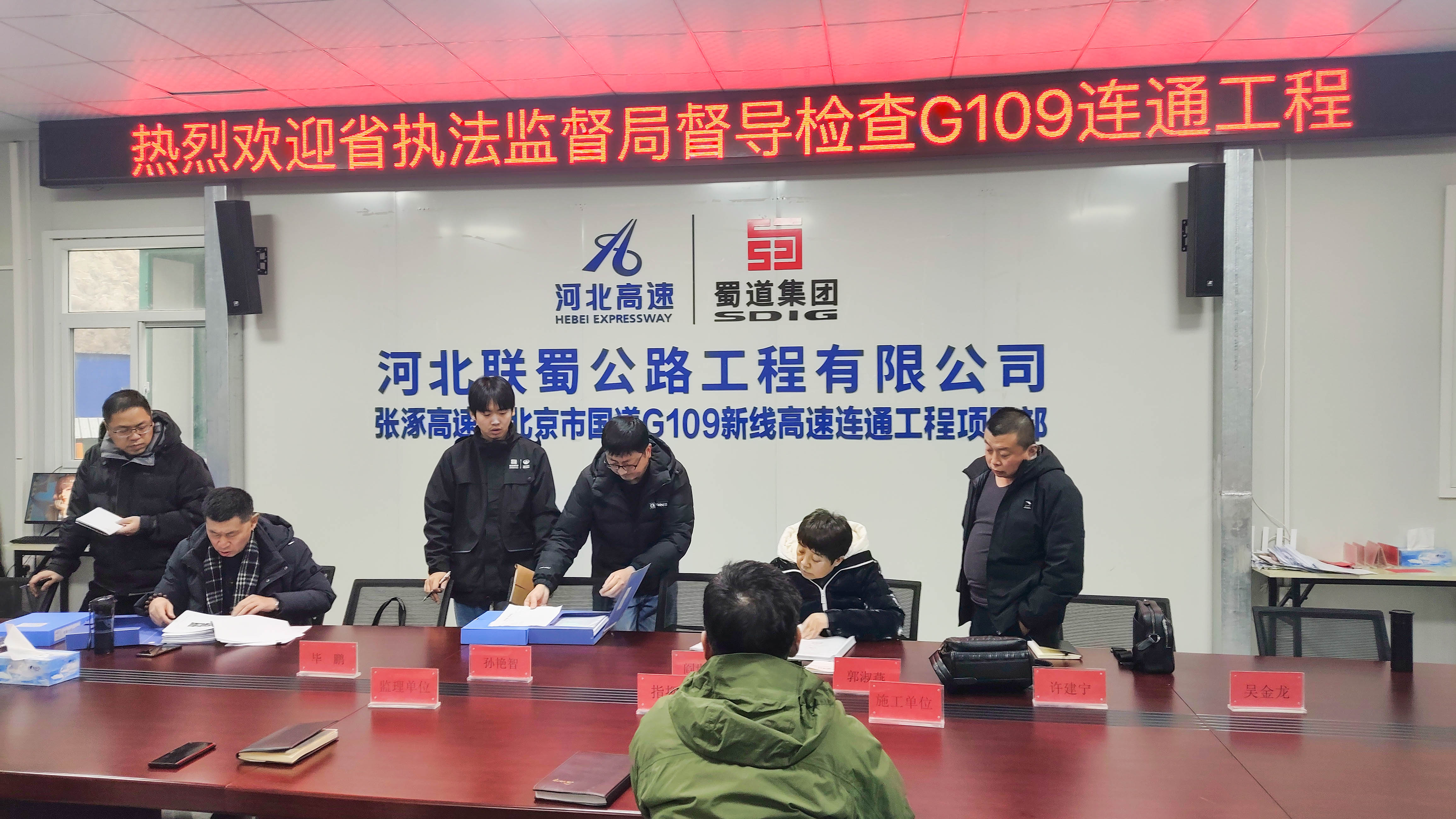 1月19日,河北省交通运输综合执法监督局到河北联蜀公司G109新线高速连通工程开展公路工程质量执法监督检查。项目指挥部、监理单位、施工单位主要负责人员陪同检查。