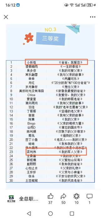 两篇征文用精炼、朴实的语言分别描写了父爱如山、对家庭深沉而无声的爱和对父亲深深的思念,得到了活动评委的一致认可,为承德分公司争得了荣誉。在组织征文活动中,分公司工会积极组织,力求通过征文活动彰显单位职工弘扬家风、奋勇争先的精神风貌,营造 “像家庭 像学校 像军队”企业文化的浓厚氛围,激励职工再接再厉、勇攀高峰,为推进分公司高质量发展贡献工会力量。