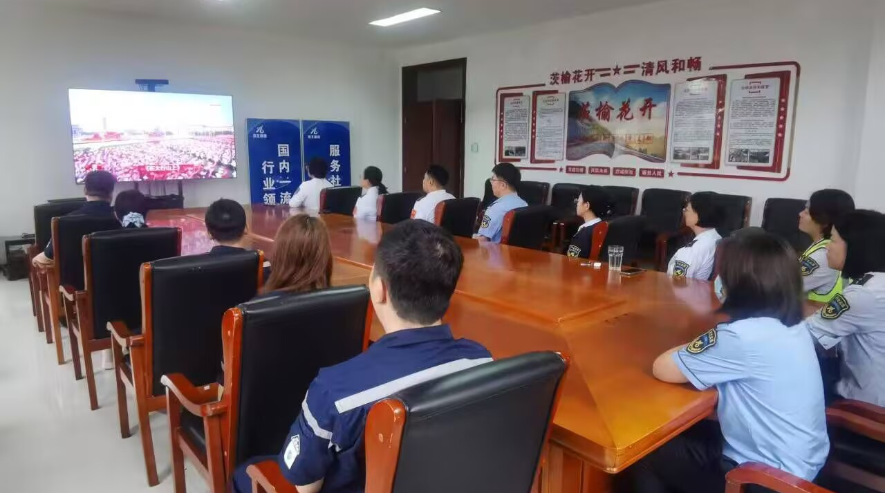 在纪念中国人民抗日战争暨世界反法西斯战争胜利80周年的庄严时刻,9月3日上午,茨榆山收费站组织全体在站党员干部职工,准时齐聚会议室,集中收看了震撼人心的纪念抗战胜利80周年阅兵式现场直播,共同回顾烽火岁月,汲取奋进力量。
