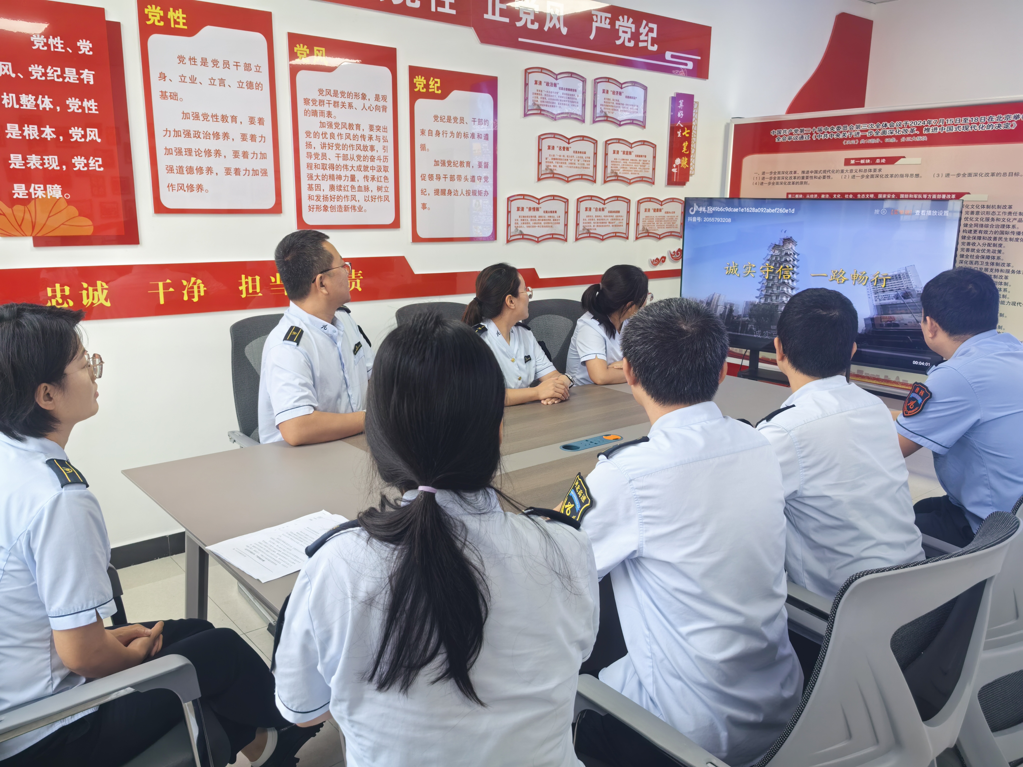 此次活动以职工思想教育为重点,采用“观看+研讨”的模式,确保宣传学习入脑入心。站内精选《诚实守信 一路畅行》主题宣传片、系列宣传海报以及收费站因诚信服务获锦旗的视频,以“身边事”教育“身边人”,使抽象的道德要求转化为职工可感知、可对照的真实形象。观看结束后,组织职工开展交流讨论,大家结合岗位实际分享心得体会,进一步明确了诚信服务在日常工作中的具体体现和实践路径。大家普遍表示,通过此次学习,更深刻理解了“诚信不仅是承诺,更是每一笔业务、每一次服务的具体行动”。