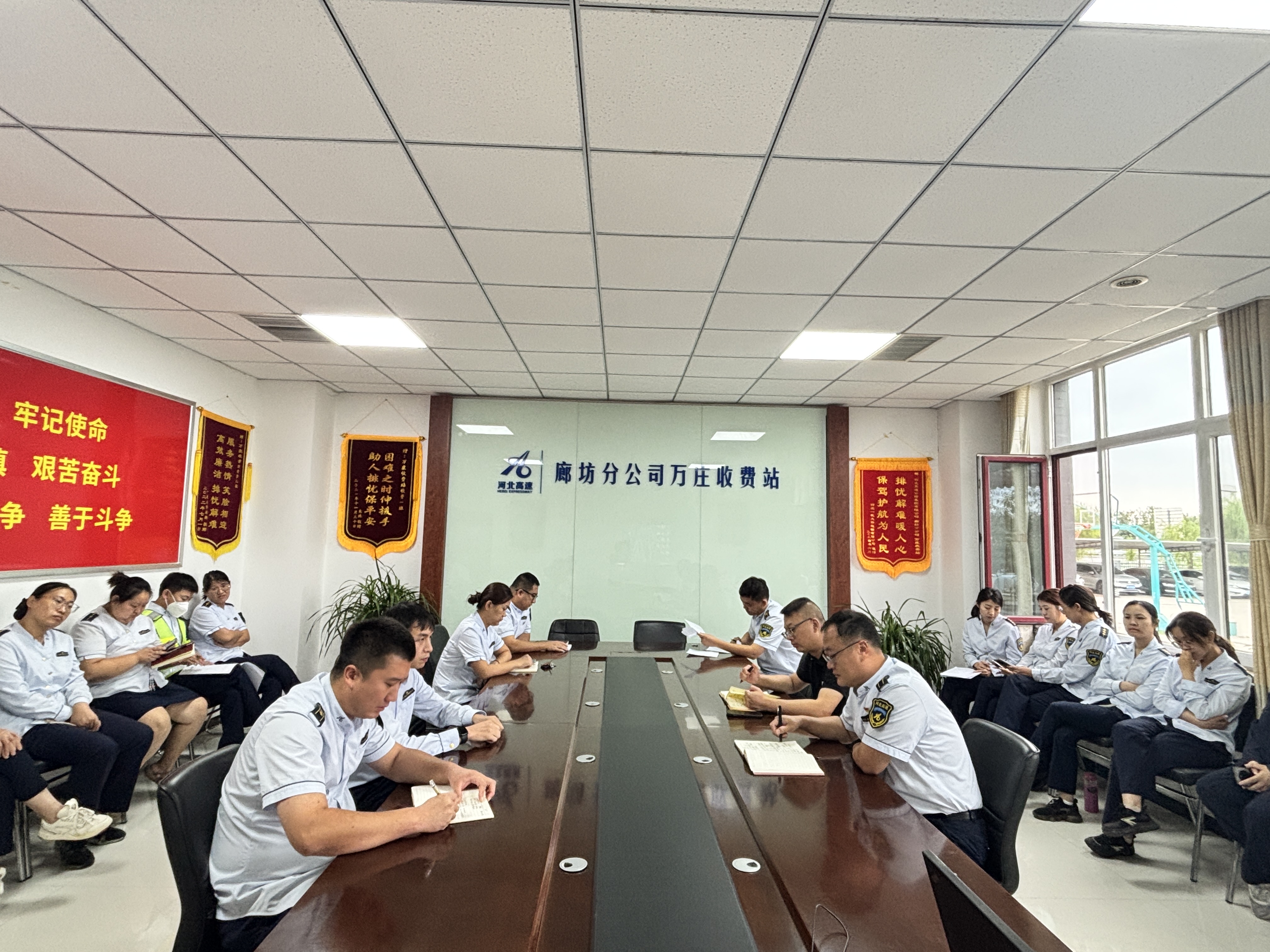 9月15日,万庄收费站组织全体职工开展9月份留营活动,全面提升收费人员的业务能力和服务水平,着力打造一支业务精通、作风优良的收费队伍,为收费站高质量发展奠定坚实的基础。