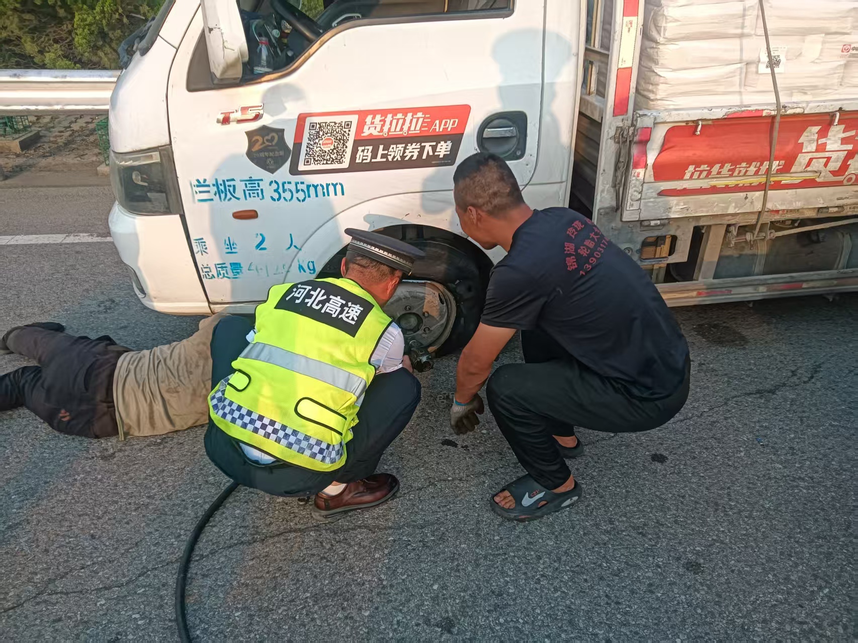 班长解彦龙闻讯后第一时间赶赴现场,一边立即组织人员增开车道保障其他车辆正常通行,一边迅速将故障车引导至收费广场安全区域。经询问得知司机是外地人员,对当地路况不熟,且运载货物时效短,解彦龙又主动帮助司机联系了附近维修厂,随后,全程协助司机更换轮胎。经过一个多小时的紧急处置,车辆终于可以安全行驶。