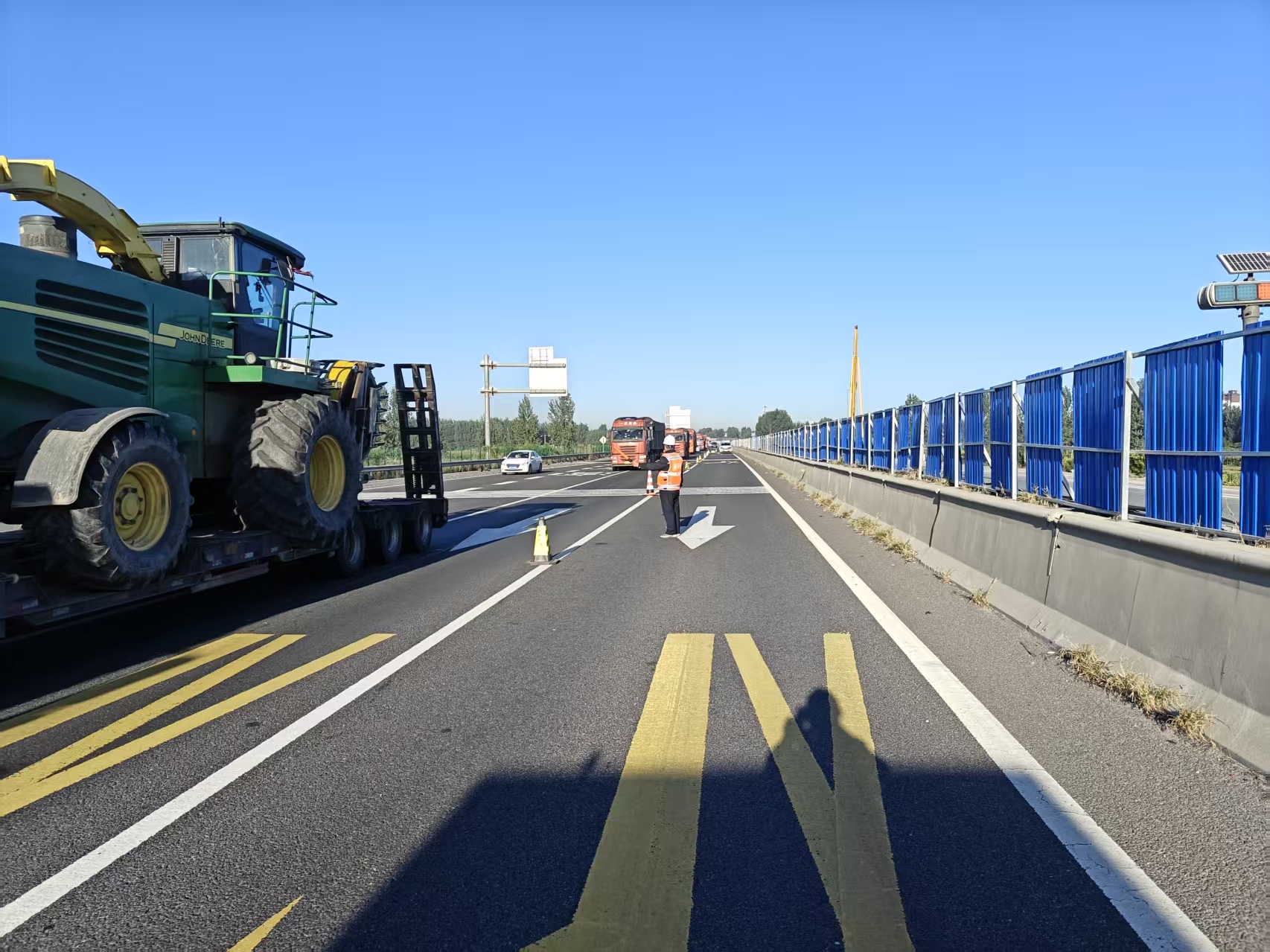 广阳保通保畅应急大队队员第一时间抵达现场。一名队员负责在现场后方摆放反光锥筒,建立安全警戒区;另一名队员则指挥疏导后方车辆,维护现场秩序。同时,大队指派救援公司迅速调派一台大型拖车和一辆轻型皮卡救援车赶往现场。救援人员到场后,熟练地解除事故车辆的气刹系统,随后将事故车辆拖下收费站,交由交警进一步处理。从事故发生到恢复交通仅用时十分钟,事故未造成车辆拥堵和道路缓行。