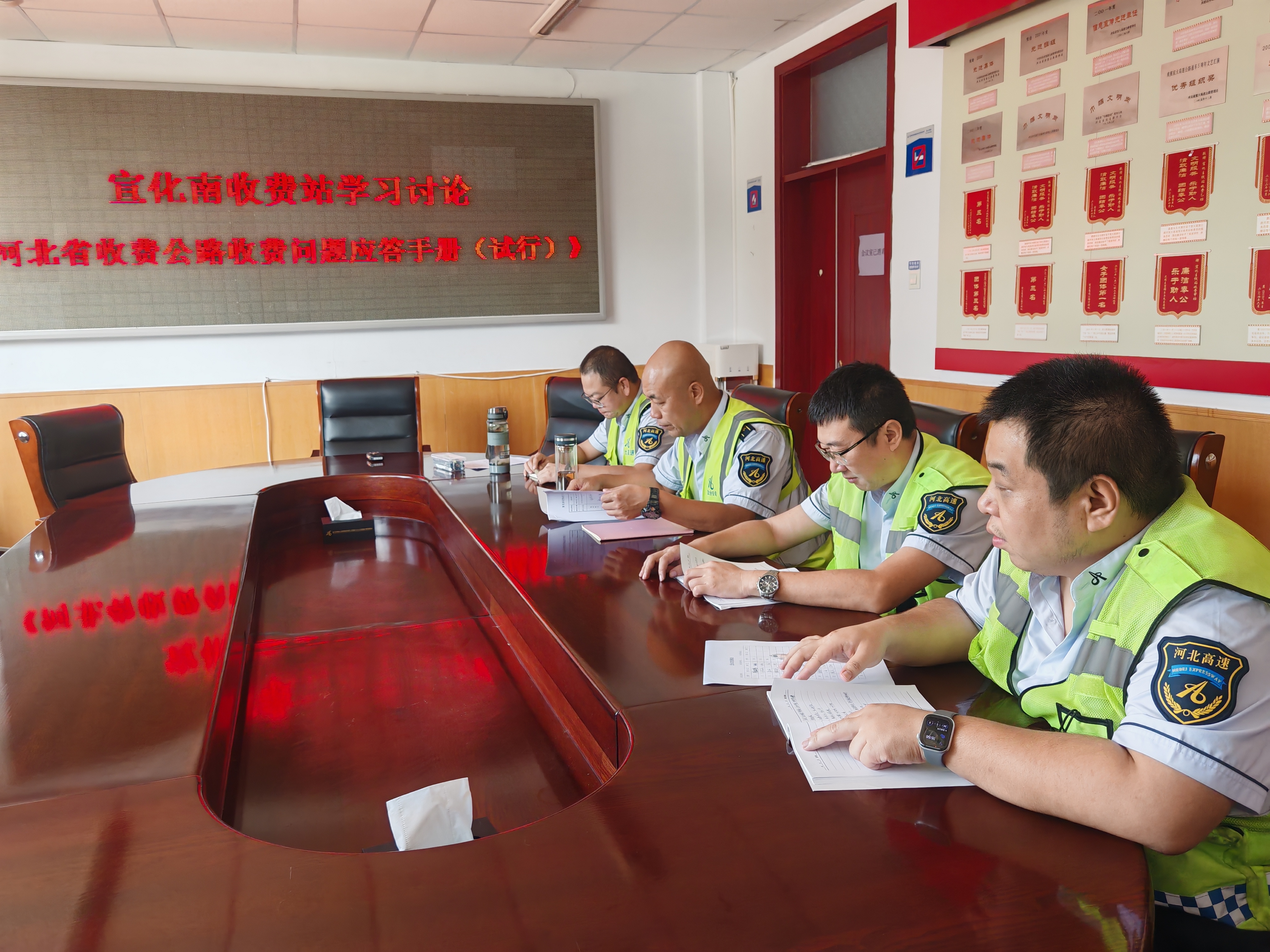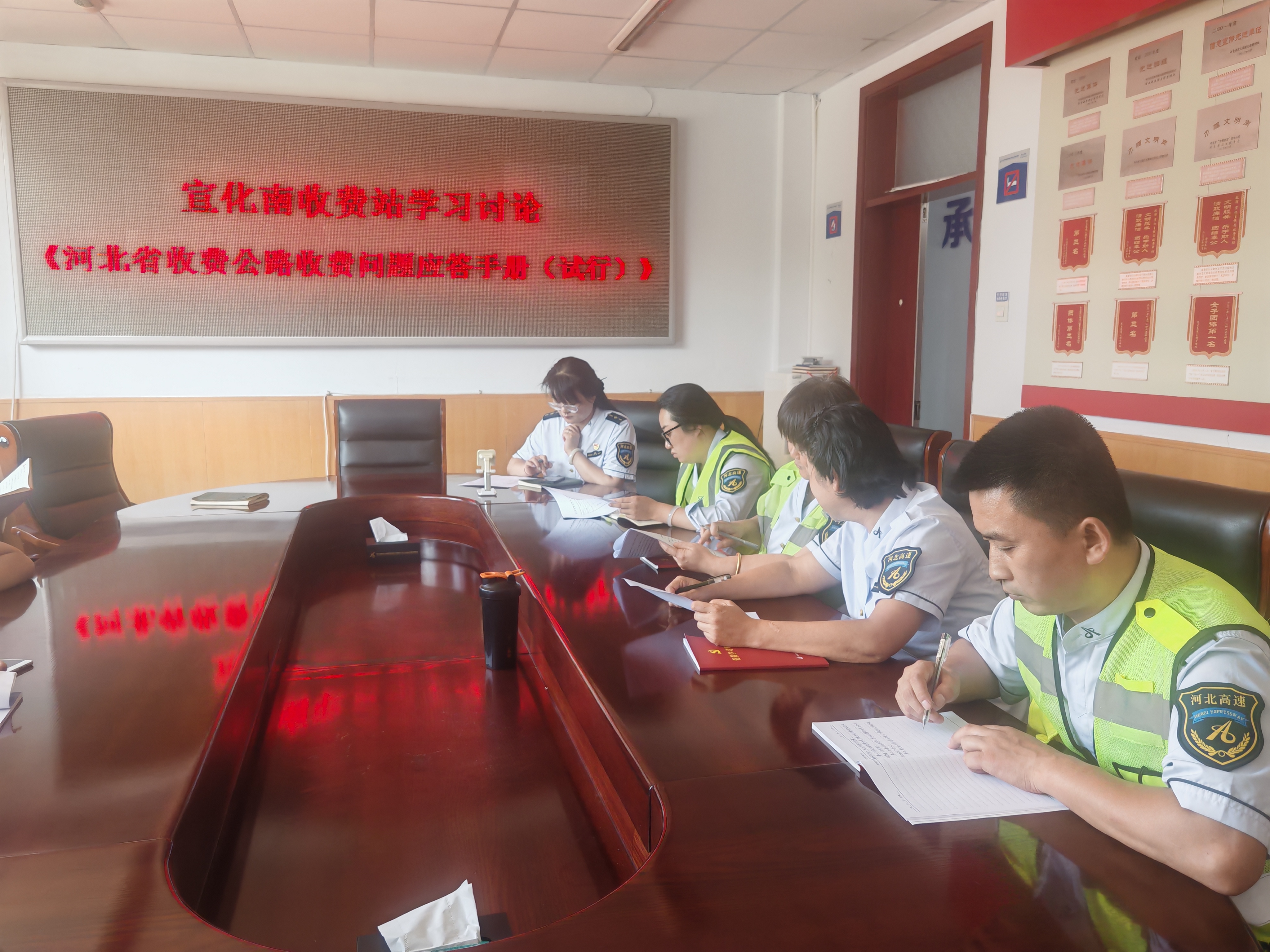 近日,宣化南站以班组为单位,组织全体收费人员集中学习《河北省收费公路收费问题应答手册(试行)》,结合目前岗位练兵活动,为切实提升一线人员业务技能,在确保学深悟透的基础上,将所学知识转化为优质服务的实际能力。
