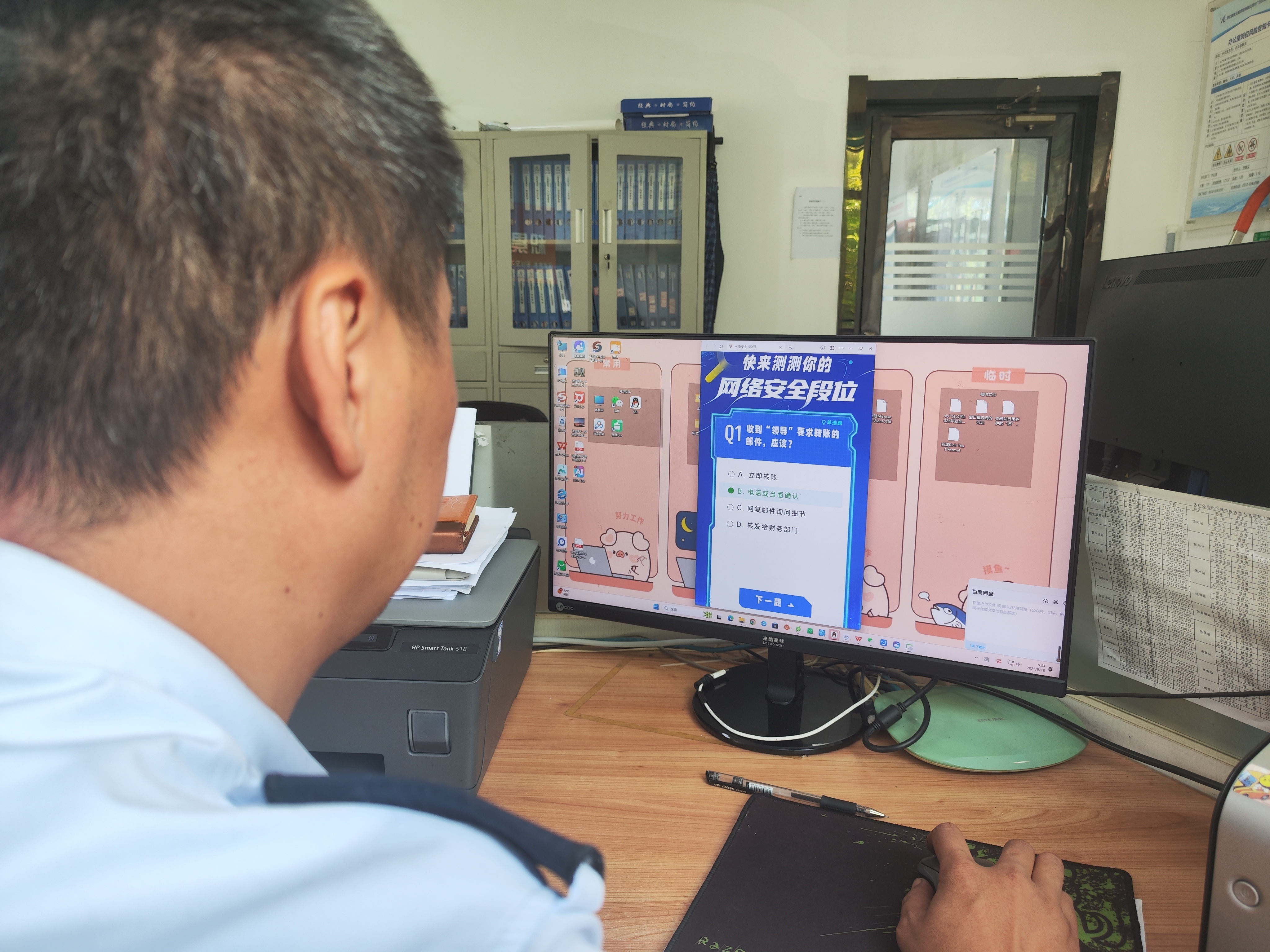 二是开展知识问答活动,激发学习热情。动员全体职工参与 “网络安全 100 问答题” 活动,题目涵盖网络安全基础知识、法律法规、防护技能等内容。职工们踊跃参与,在答题过程中加深对网络安全知识的理解与掌握。