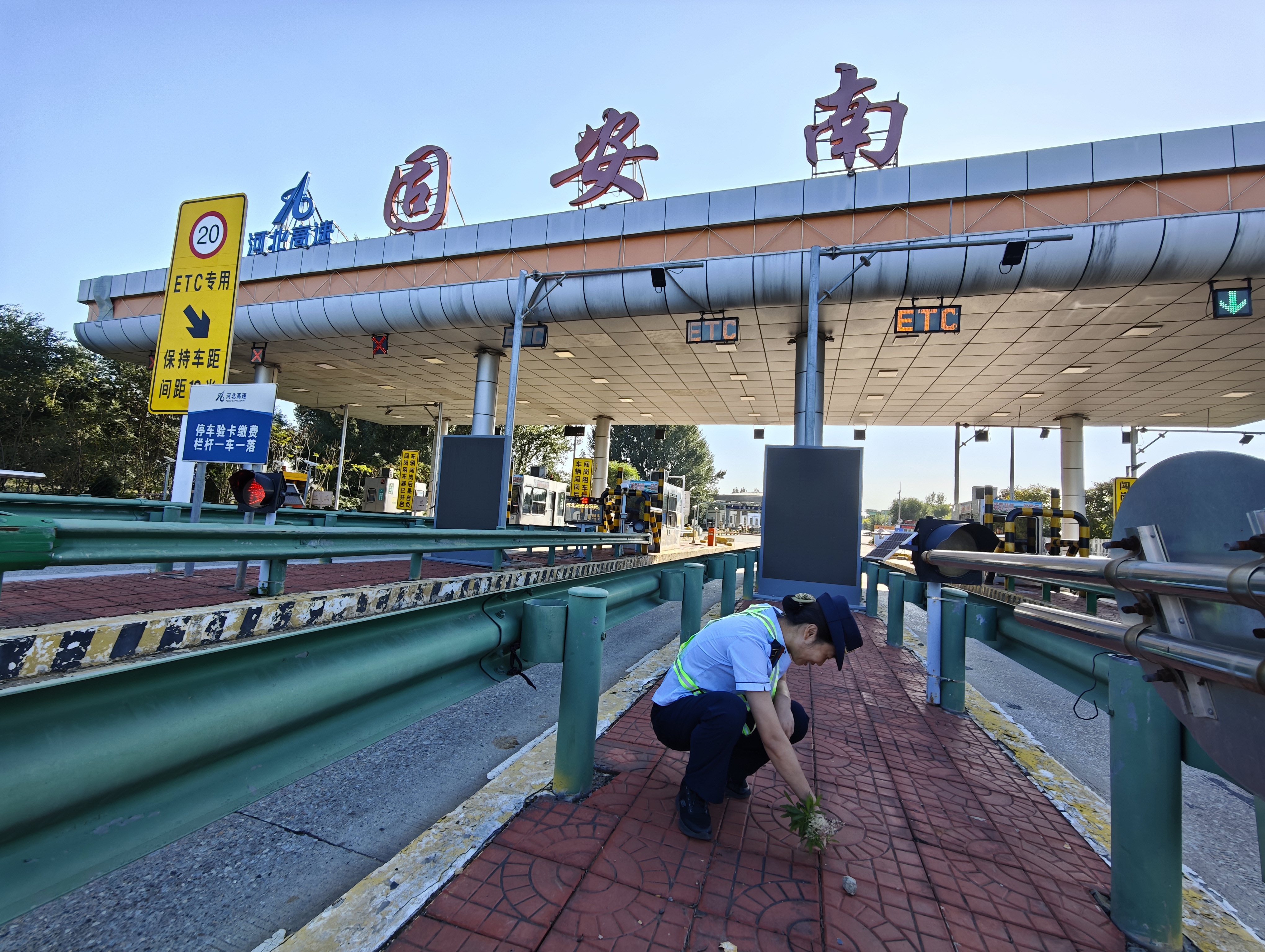 全面清扫,美化路域环境。各部门职工对收费广场、车道、岗亭、边沟等收费区域进行全面清扫,清扫白色垃圾,清除岛头杂草,清洗岗亭灰尘,对收费设施进行擦拭和维护,确保设施设备干净整洁、正常运行。