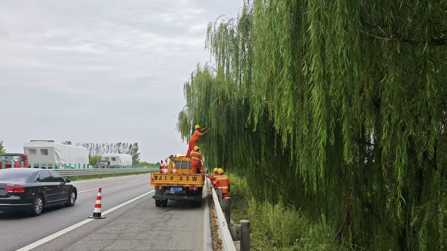 二是精细修剪沿线绿植。重点对高速沿线匝道、服务区出入口、标志标牌周边生长过盛、易遮挡行车视线或交通标识的树木、灌木及杂草,进行统一修剪与清理。消除视野盲区、优化安全行车环境。