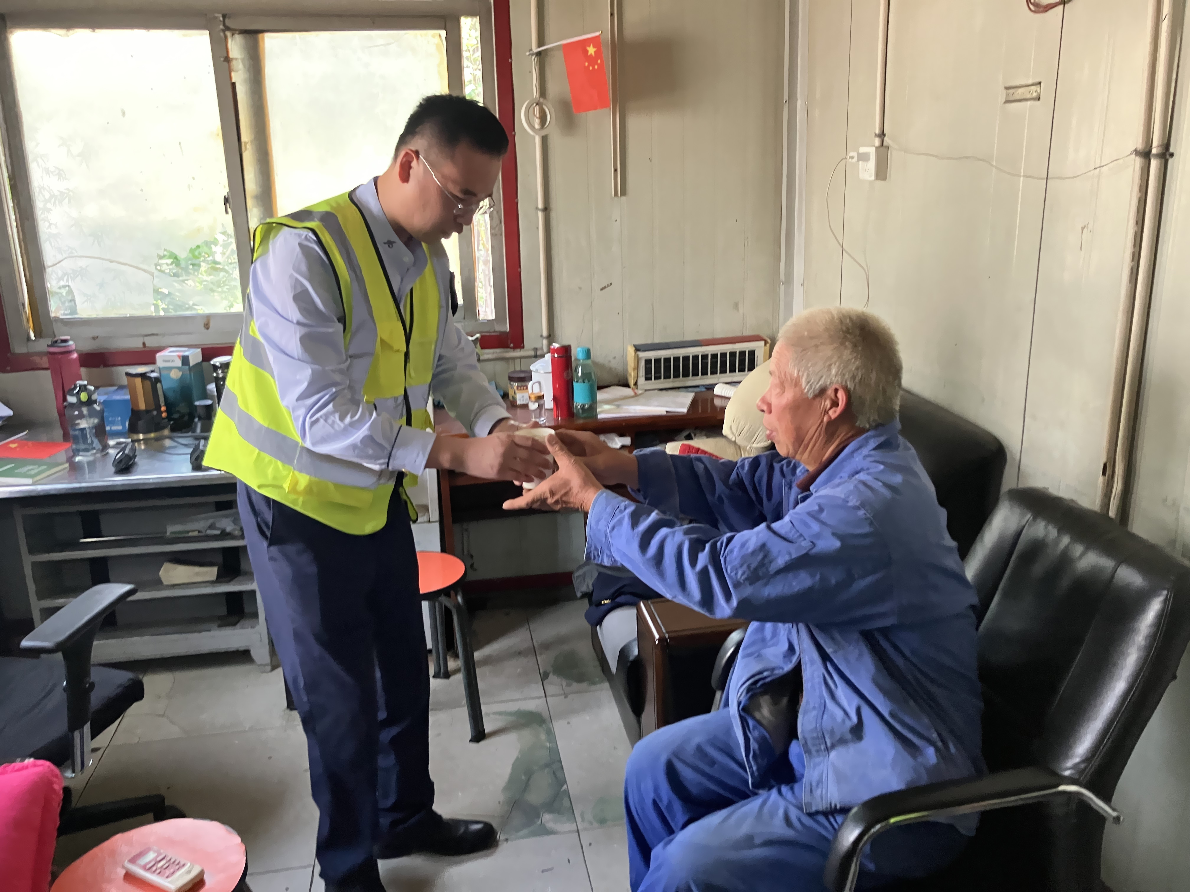 9月25日下午14时,在鄚州站收费广场疏导车辆的收费员安玉斌发现入口广场护栏处有一位老人倚靠在护栏边,脸上露出疲惫与不适的神情,见状安玉斌立即快步走向老人,轻声询问老人是否需要帮助,老人称因错过了上一趟客车,一时心急有些头晕。