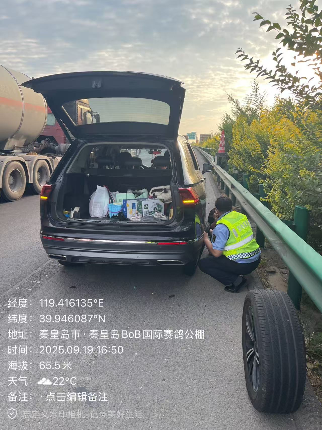 当日,秦皇岛保通保畅应急大队一中队中队长刘闯与队员张二民像往常一样执行巡逻任务。当车辆行驶至 G1 高速北京方向 K264+300 公里处时,二人发现一辆小型轿车停靠在应急车道内,存在极大安全隐患。他们立即拉响警报,迅速上前了解情况。