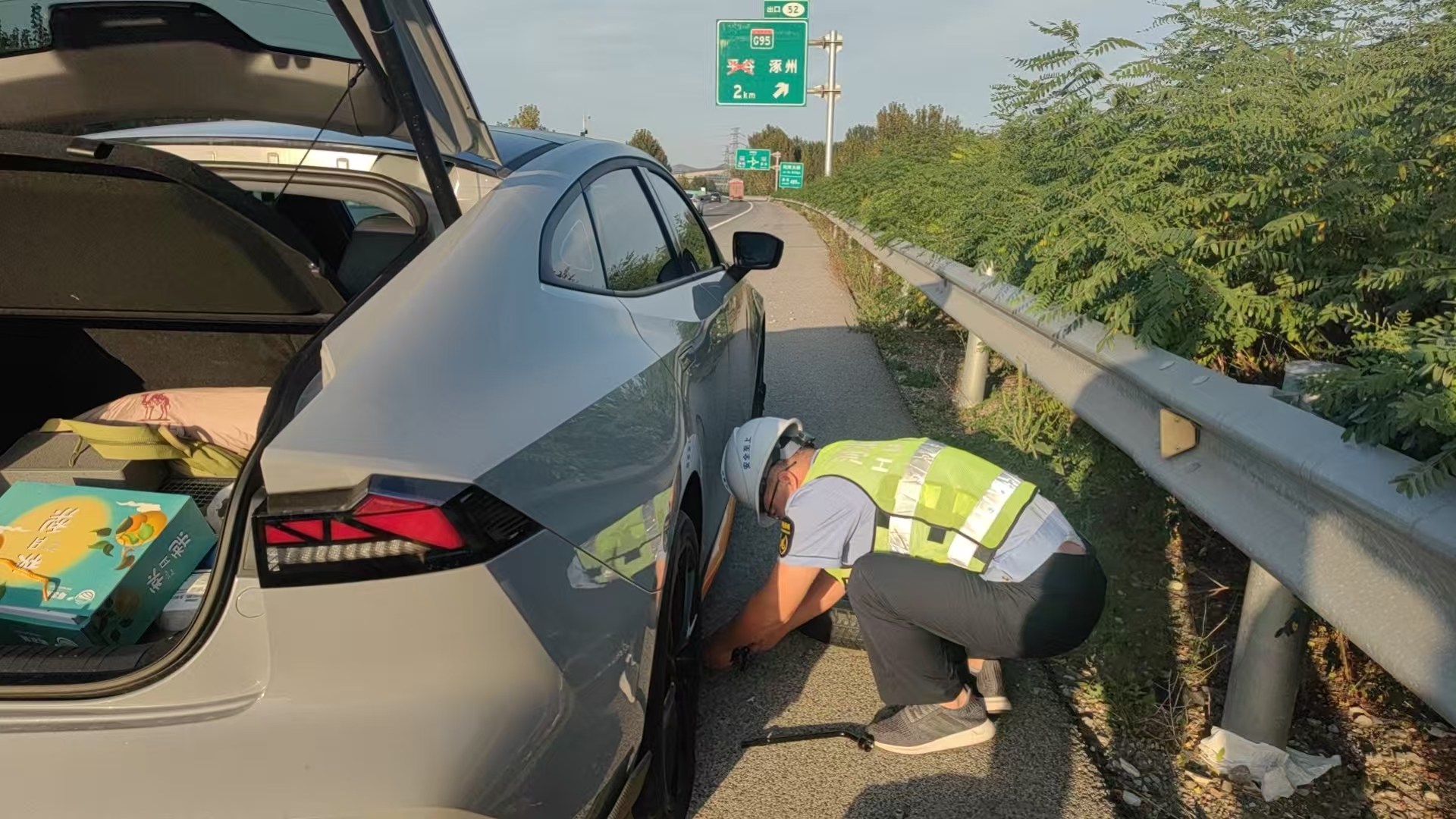 近日,在京秦高速秦皇岛方向K50处,一辆私家车因车胎压到异物被迫停在应急车道。司机面对突发状况手足无措,正焦急时,廊坊分公司大厂保通保畅应急大队外业二中队队员及时发现并伸出援手,化身“换胎工”为司机解决燃眉之急。