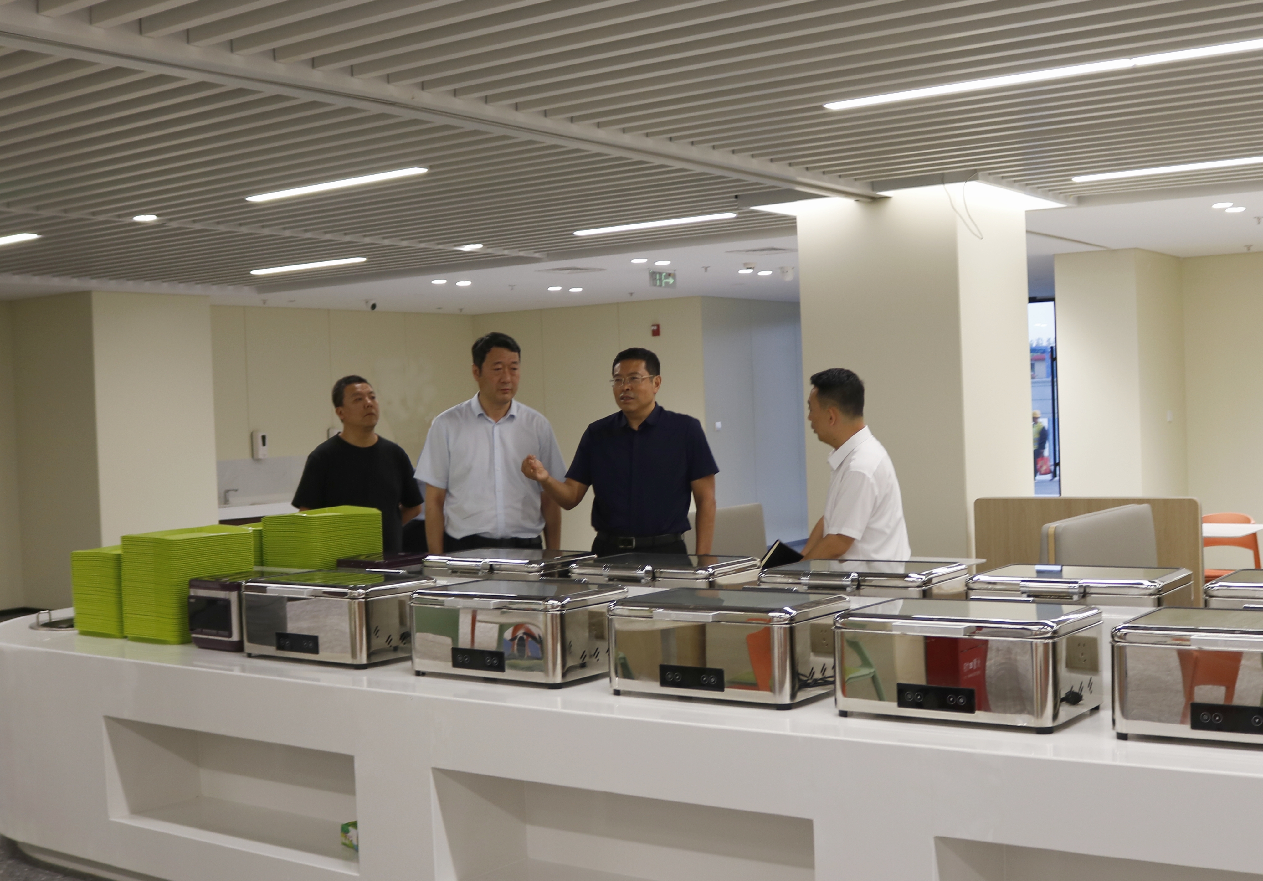 宣国宝实地查看了总部新办公楼室外工程、迎宾大厅、多功能会议大厅、职工餐厅和部分办公区域的建设情况,分别听取了集团办公室对总部新办公楼运营管理思路和试运行情况的汇报,以及续建办公室对项目建设情况的汇报。宣国宝对总部新办公楼项目建设和试运行工作给予充分肯定。