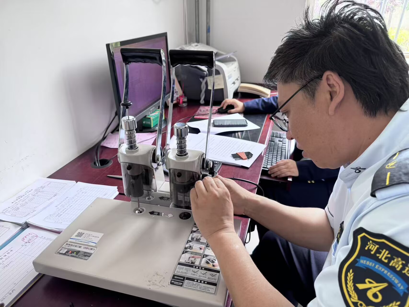 经过近两小时的细致操作,装订机成功修复并完成试机,各项功能恢复正常,可满足日常票据装订需求。此次自主修理,不仅为单位节省了维修开支,更提升了工作人员解决设备故障的能力,展现了综合管理室团队务实高效、主动作为的工作作风,为后续票证工作的顺畅开展提供了保障。