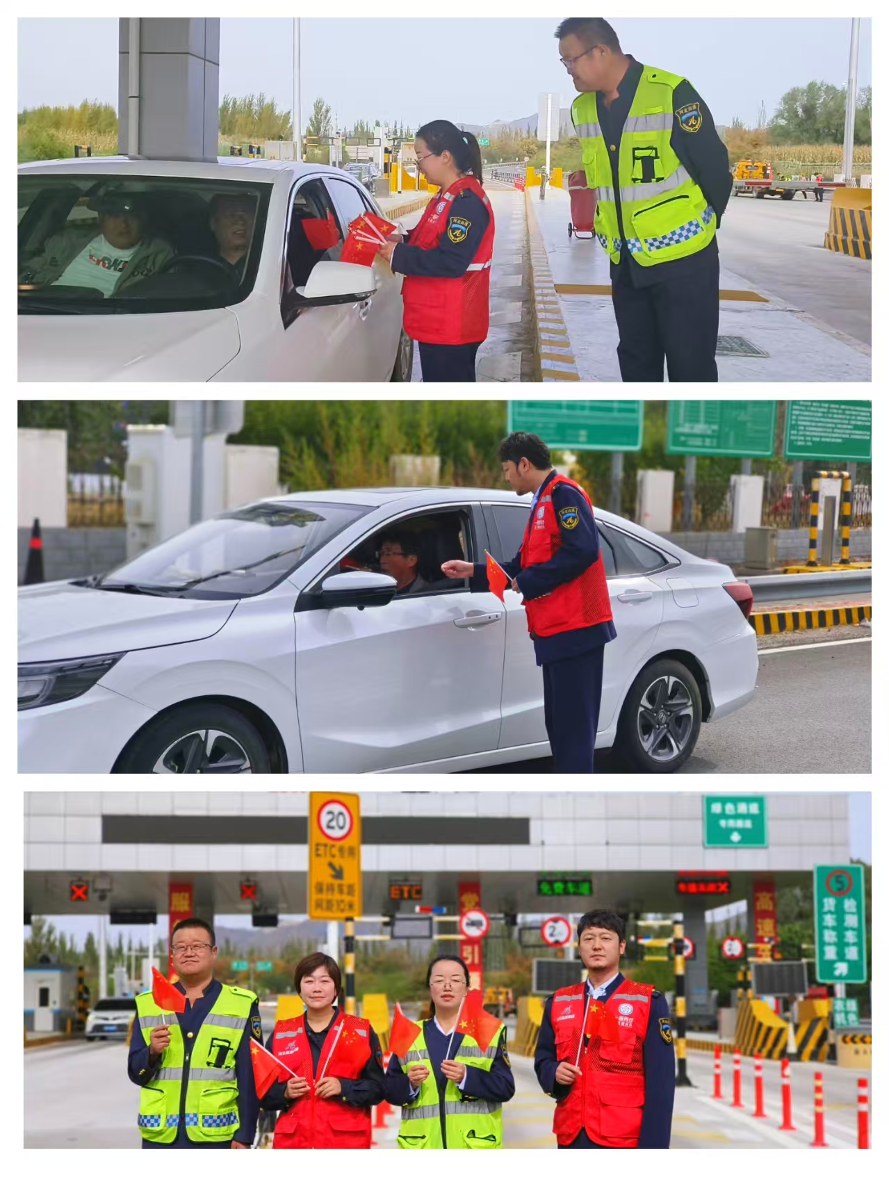 10月2日,宣大分公司深井收费站组织开展了“国庆送祝福,服务暖人心”志愿服务活动,用一抹“中国红”为过往司乘人员送上最真挚的节日问候。
