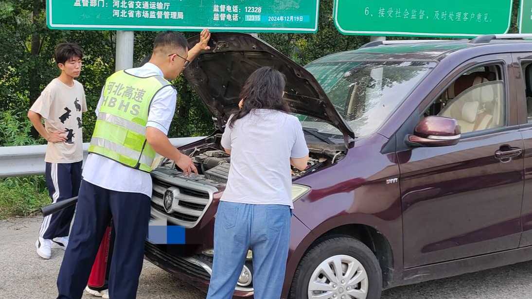 正在入口车道疏导车流的收费员发现后,立即向班长报告,并第一时间快步上前。一边安抚司乘人员的情绪,一边在车辆后方做好安全警示,引导后方车辆有序避让,随后,迅速协调同事将车辆推至安全区域,在确认安全后,收费员俯下身,凭借自己多年积累的车辆知识,主动帮助司机打开引擎盖排查故障。