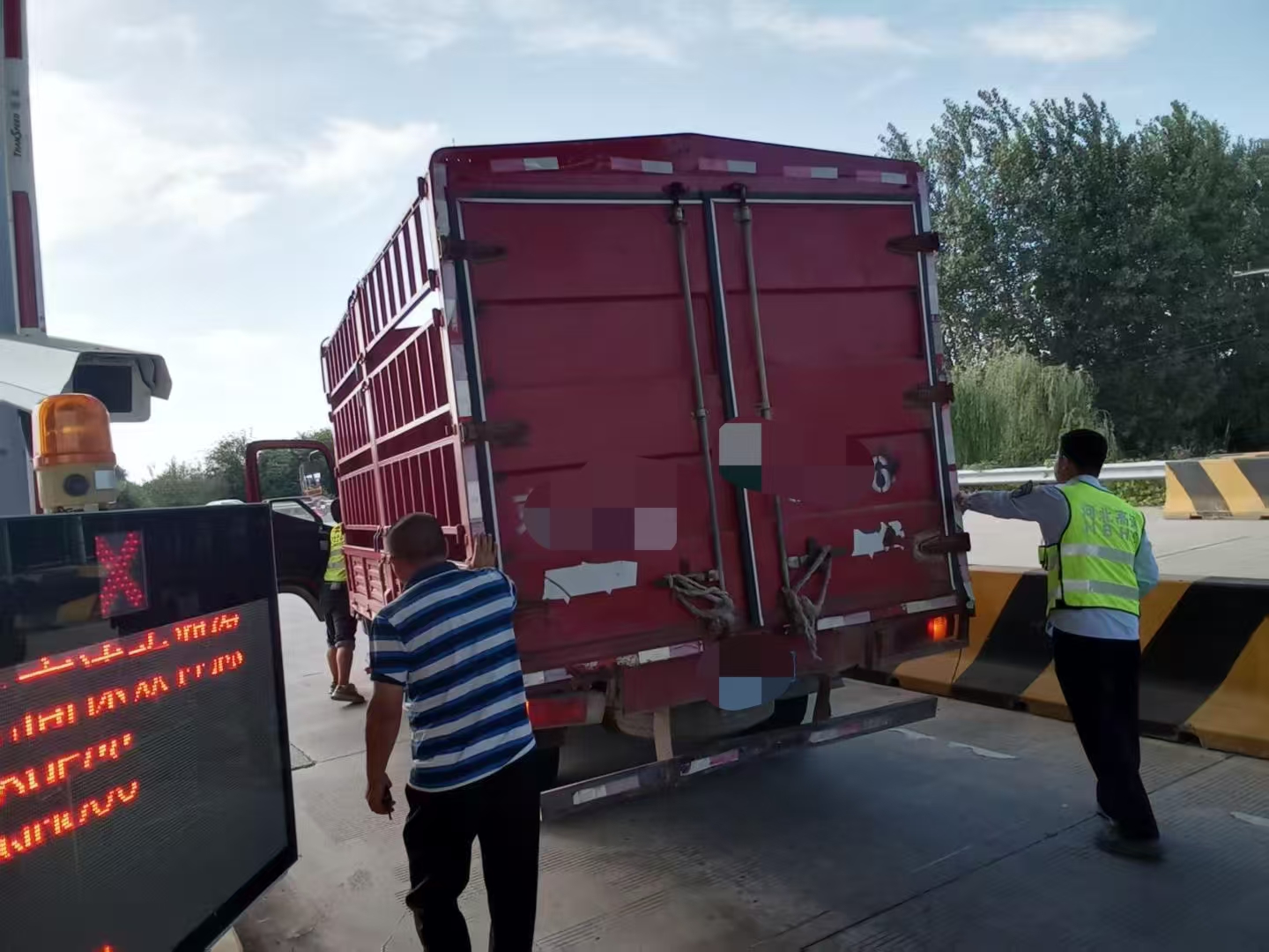 10月3号下午,一辆红色一型货车停在了万庄收费站出口9道,司机缴费成功后,发现他的车无法正常启动,仪表显示水箱高温,几次尝试启动无果后,为了保障站口畅通,当班收费员立即加开出口8道疏导后方车辆,同时喊来疏导员帮助该司机,经疏导员简单了解情况后,立即帮助司机把车推出车道,虽然该车拉的东西不多,但是总重也有4吨多,滚阻很大,并且该车司机需要在驾驶室控制方向,单凭疏导员一个人很难把车推动,随即发动后边排队等候的货车司机过来帮忙推车,众人拾柴火焰高,在三个人的协作下,车轮滚动起来,车辆缓缓前进,离开了车道,停在了收费站外广场的一个安全位置等待救援。