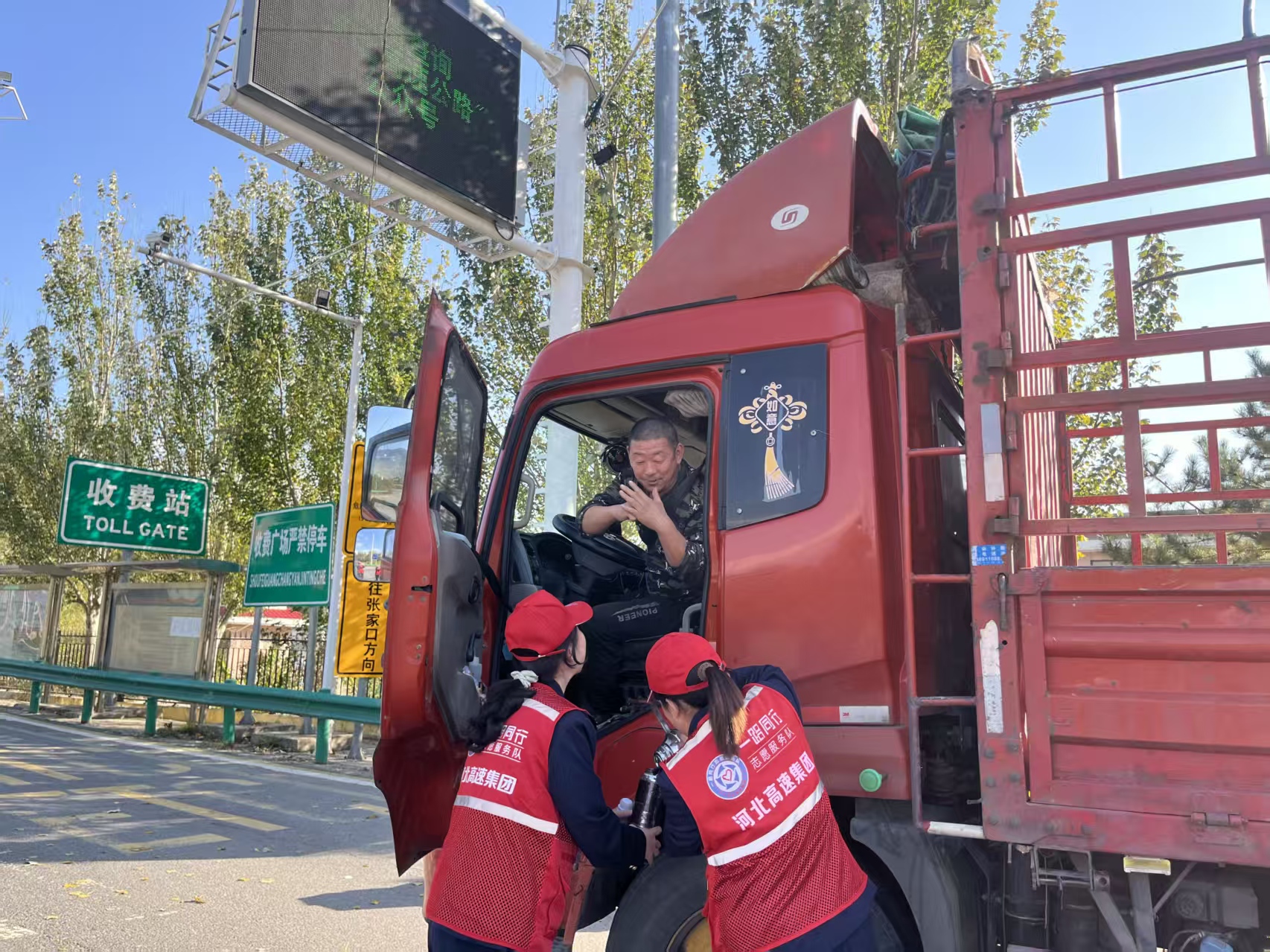 细节暖人心,保障实打实。在收费广场设置服务台,除常备热水、急救箱、修车工具外,解决司乘突发需求。监控中心实时监测车流,通过沿线电子屏推送“实时拥堵点+备选路线”;保通保畅大队24小时待命,强化与交警、路政联动,遇车辆故障,第一时间抵达现场协助更换轮胎、联系救援,全力保障通行安全。10月4日,怀来北收费站志愿者及时协助一位车辆故障的货车司机联系维修人员,及时化解司机突发困境,守护平安旅途。