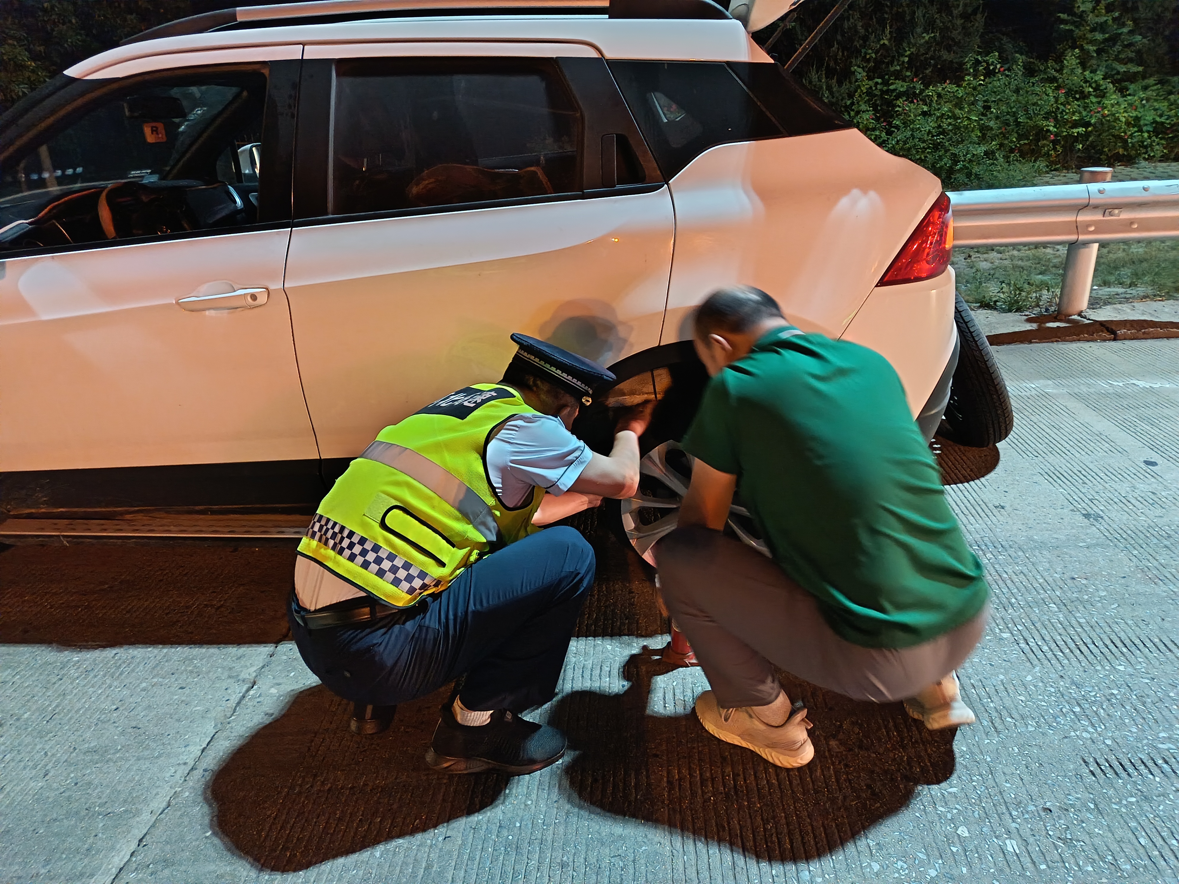 经过询问得知,该车驶出高速时突然爆胎,司机本想自行更换备胎,却发现车上没有携带工具。“家里人还等着我回去吃团圆饭呢,这可咋整啊!”司机紧锁眉头,语气里满是焦急与无奈。“您别着急,肯定耽误不了您回家吃月饼!” 张玉松这简单的一句话,瞬间平复了司机焦躁的情绪。随后,他迅速从便民服务台取来千斤顶、扳手等修车工具,帮司机更换轮胎。由于螺丝生锈,拧起来格外费力,张玉松半跪在地上,使劲转动扳手,最终顺利卸下瘪掉的左后轮胎,换上了备胎。