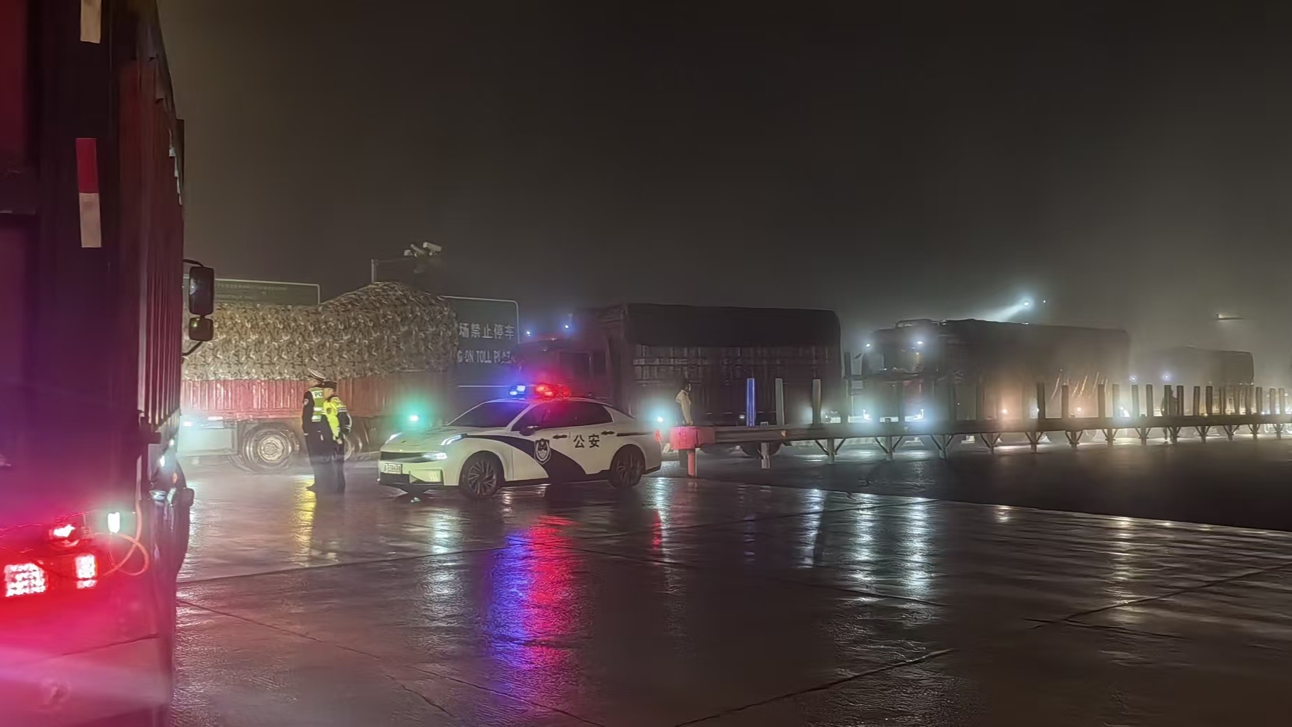得知路况预警后,收费站第一时间派备岗人员进行疏导,并在广场外围布设反光锥与警示标识,划定临时等候区域引导车辆有序排队,避免加塞剐蹭事故发生。交警驾驶警车疏导滞留在主线的车辆,引导其向收费站方向有序撤离 。