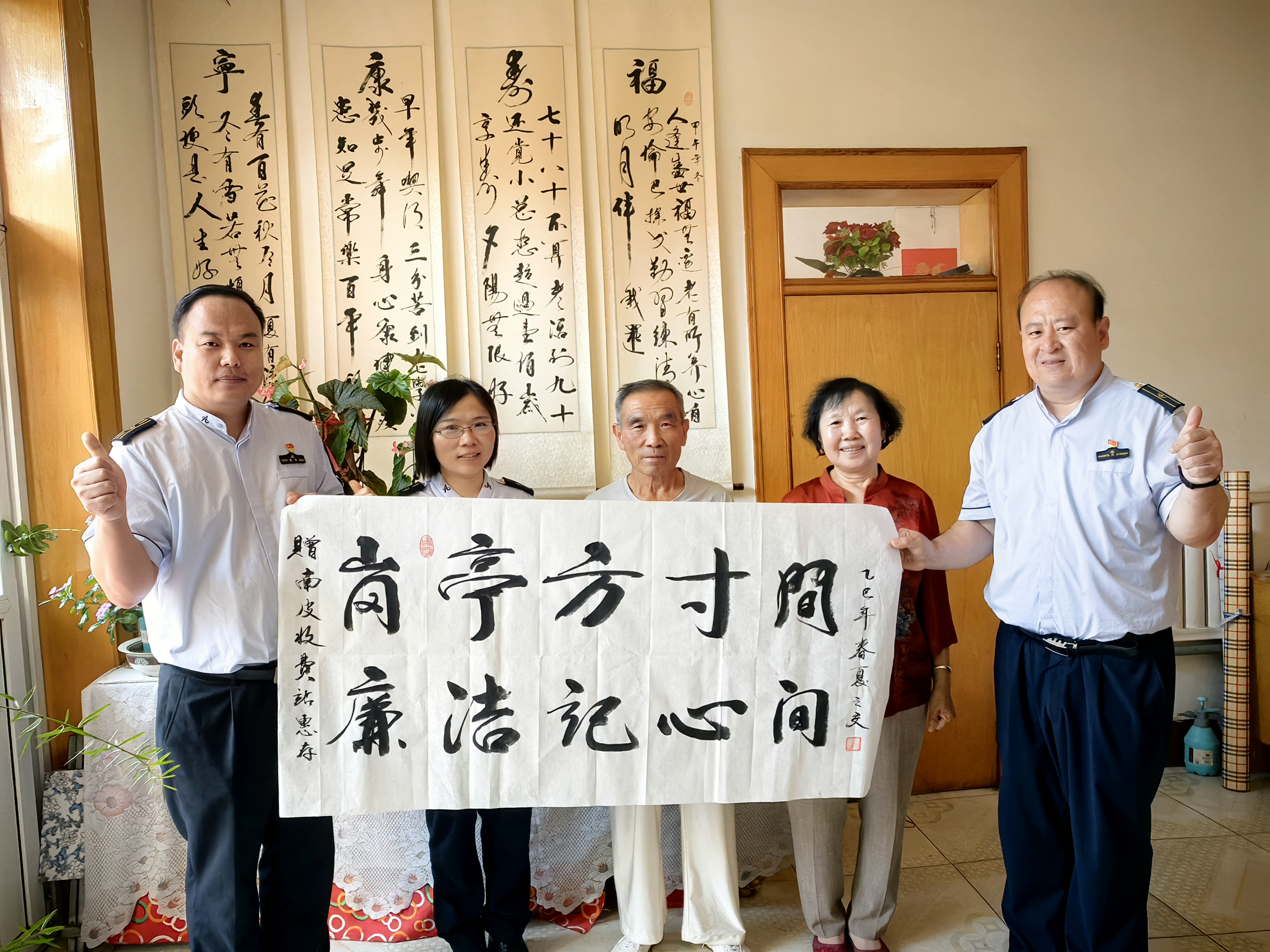 此次活动由党支部书记带领纪检委员、廉勤监督员,对干部职工家庭进行走访。详细了解职工家庭生活状况、思想动态,认真倾听家属对廉洁文化建设的意见建议,阐释“家风正则作风淳”的深刻内涵,并为职工家属送上廉洁读本。南皮收费站职工蔡仁花父亲现场挥毫写下“岗亭方寸间、廉洁记心间”的书法作品,以笔墨传情,字里行间蕴含着家庭对廉洁文化的深刻认同,更承载着对京沪分公司发展的美好祝愿。