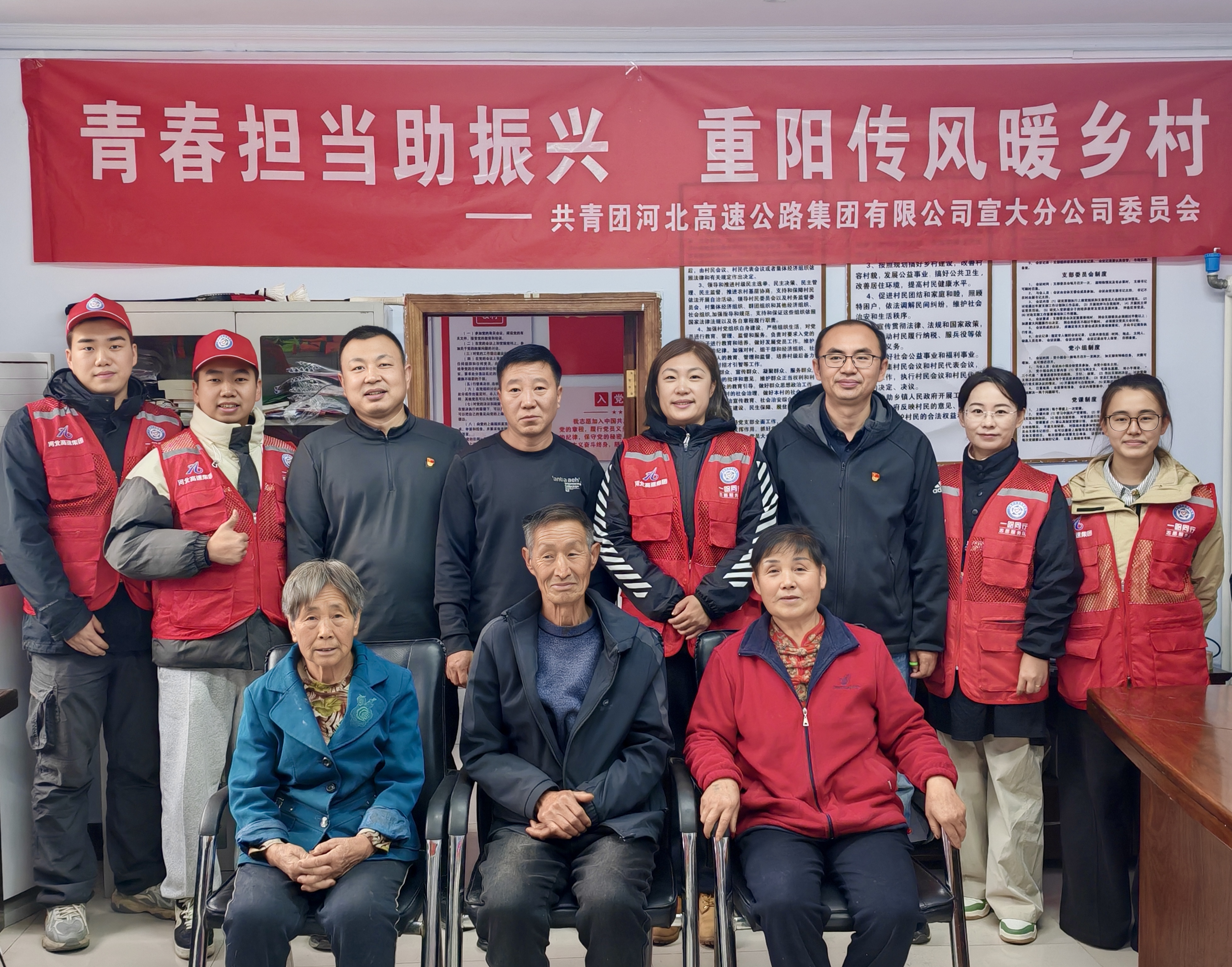 重阳佳节到来之际,宣大分公司团委聚焦乡村振兴战略与尊老敬老传统美德,组织青年职工志愿者前往涿鹿县河东镇苏涧村,开展“青春担当助振兴,重阳传风暖乡村”主题志愿服务活动,以青春力量解决老人实际困难,传递温暖关怀。