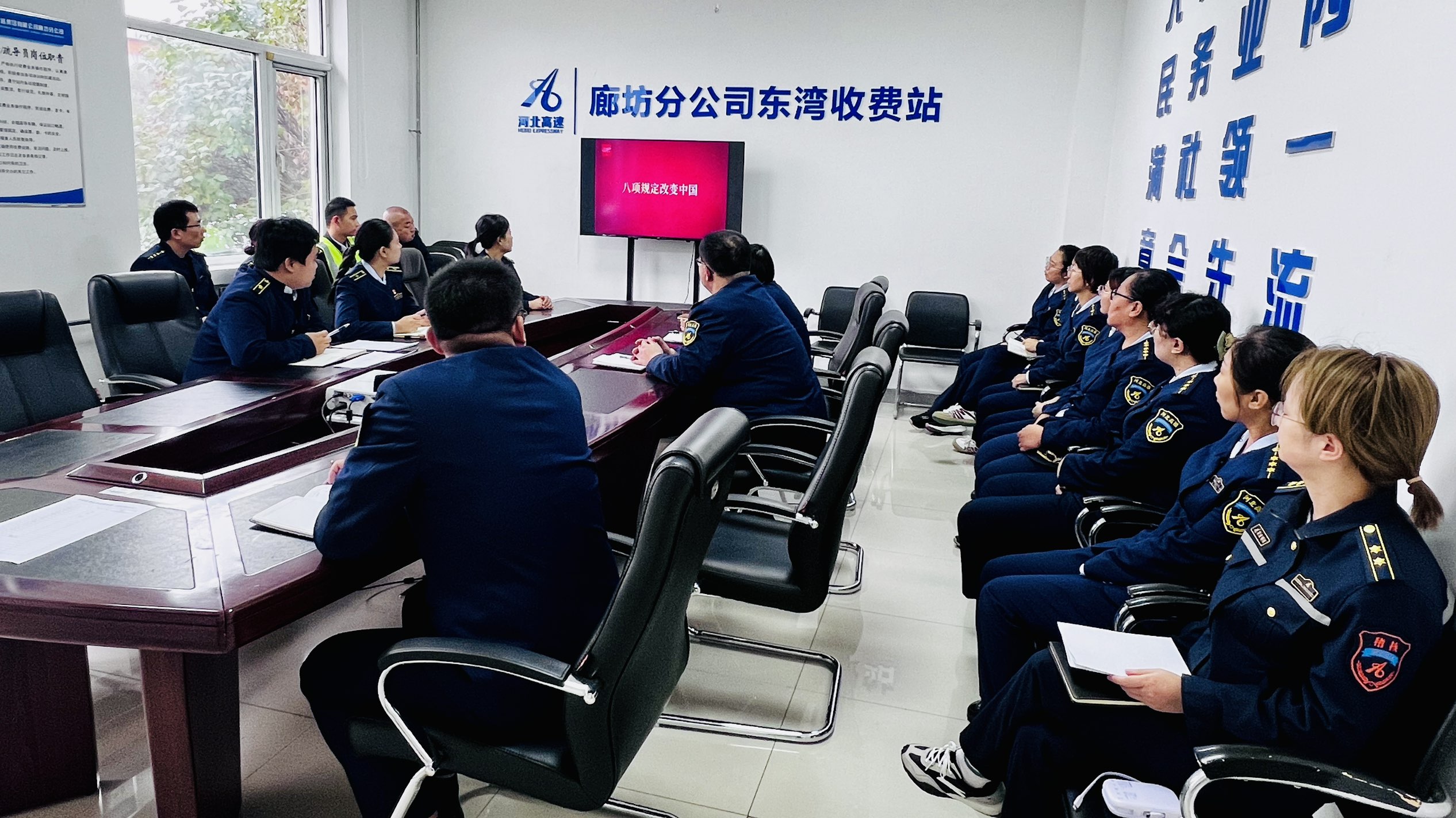 为深入学习贯彻中央八项规定及其实施细则精神,强化全员纪律意识与廉洁从业理念,近日,东湾收费站组织全体干部职工集中观看警示教育纪录片《八项规定改变中国》。