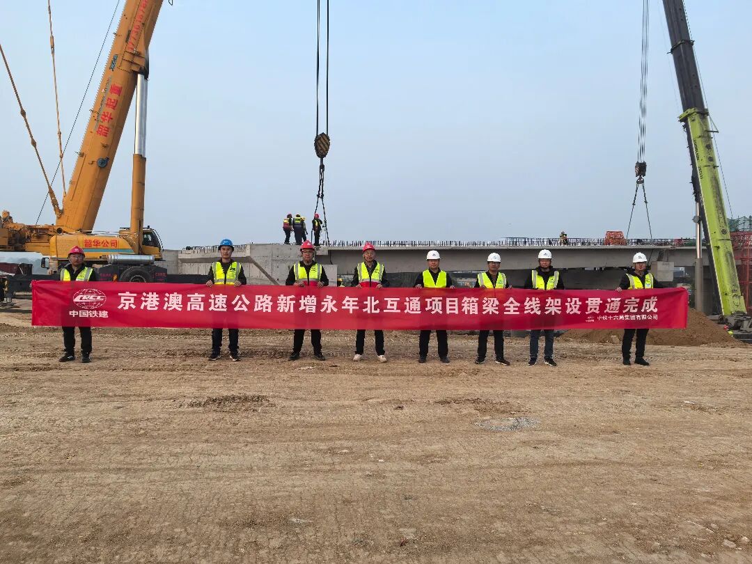 11月5日,随着最后一片30米长的预制箱梁平稳、精准安装就位,由河北高速集团石安分公司承建的京港澳高速新增永年北互通项目控制性工程——AK0+851.73 A匝道桥箱梁架设任务圆满完成,标志着该互通桥梁主体结构全线贯通,为项目如期通车奠定坚实基础。