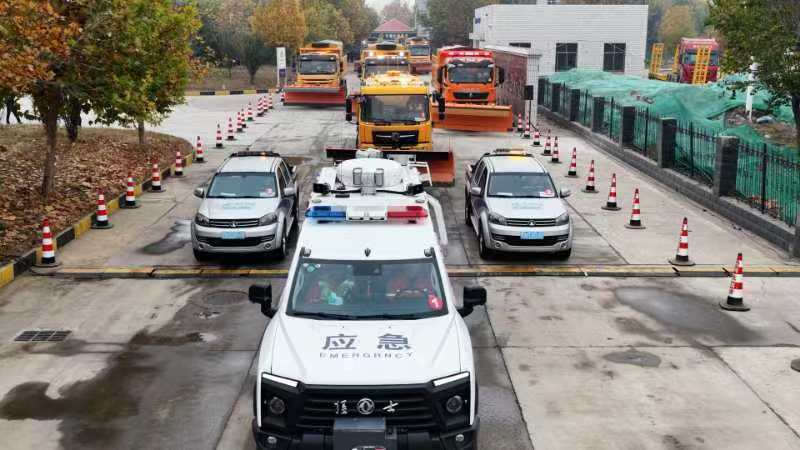 此次模拟演练分中雪、暴雪两种场景:面对中雪雪情,藁城养护队共出动20吨液态除雪撒布车1辆、固态铲雪撒布斗3辆,3辆撒布斗呈梯次型行驶,确保一次性清除路面所有积雪;面对暴雪雪情,河北高速公路集团有限公司公路应急救援队携抛雪机、破冰机等装备进行除雪、除冰作业。