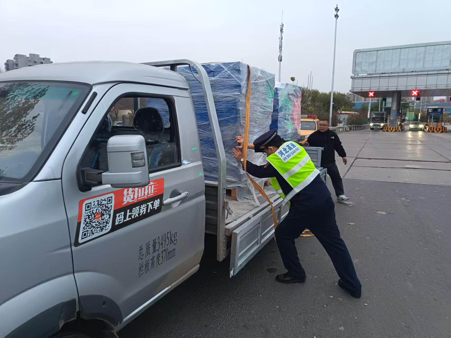 “师傅,您车后面的货歪了,很危险,得赶紧重新固定一下!”许欣明立刻探出窗口,急切地提醒司机。司机师傅闻言,道谢后领过卡,急忙将车辆驶离车道,在收费内广场找到一处相对安全的位置停了下来。