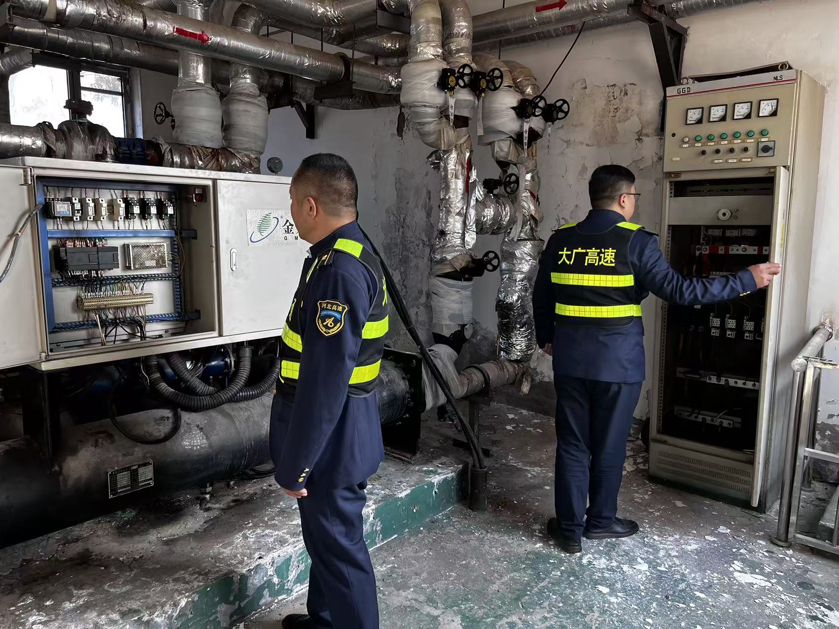 排查过程中,小组人员深入站区关键区域,实地检查发电机、水泵房、地源热泵等核心设备的运行状态,细致查看设备有无异常声响、线路是否规范、防护措施是否到位,确保设备处于稳定运行状态。同时,随机抽查站区消防栓水压、灭火器有效期及压力值等关键指标,现场测试消防设施使用性能,保障应急设备“拿得出、用得上”。
