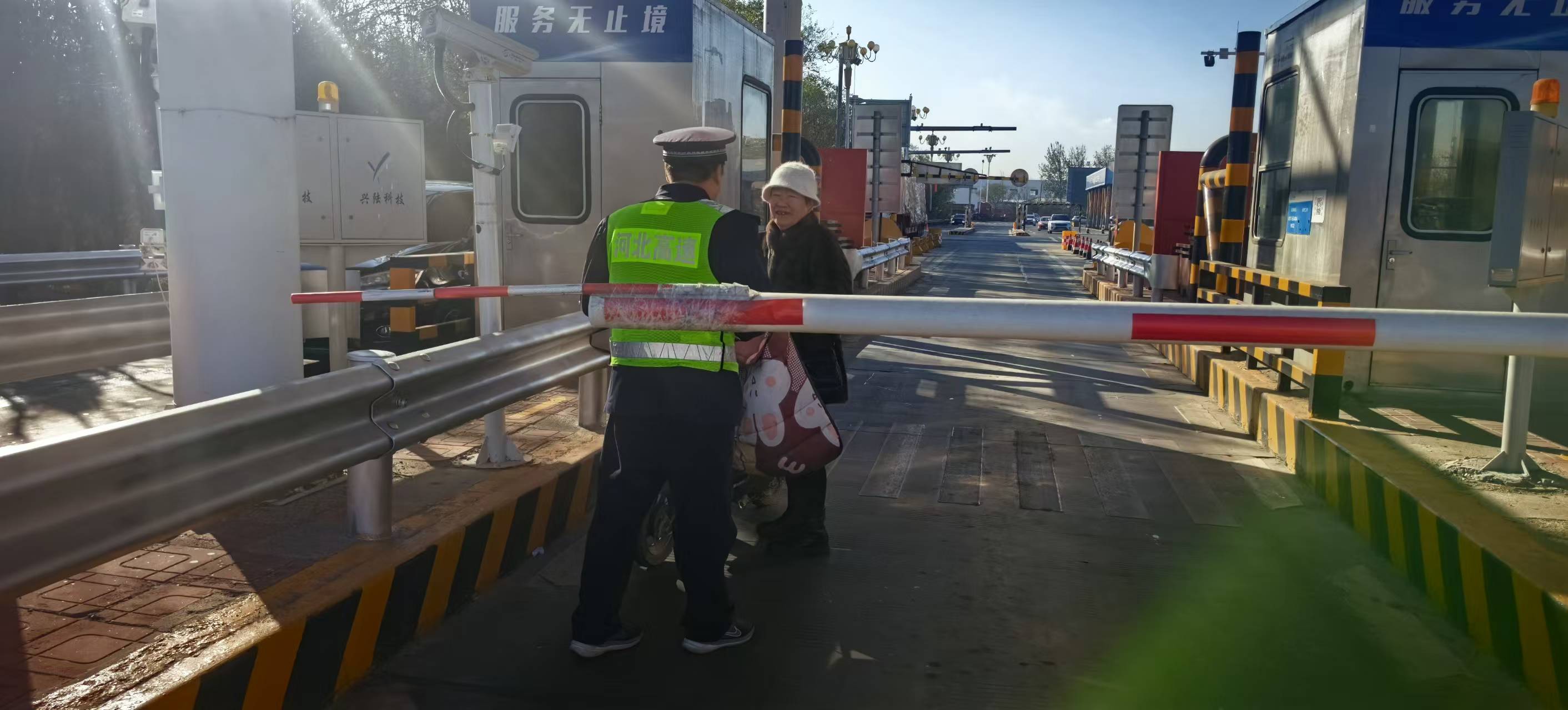 11月20日下午两点多,京沪分公司东光收费站收费广场上演温情一幕。当班班长赵斌凭借责任与担当,及时劝阻误闯高速的老人,筑牢安全防线。