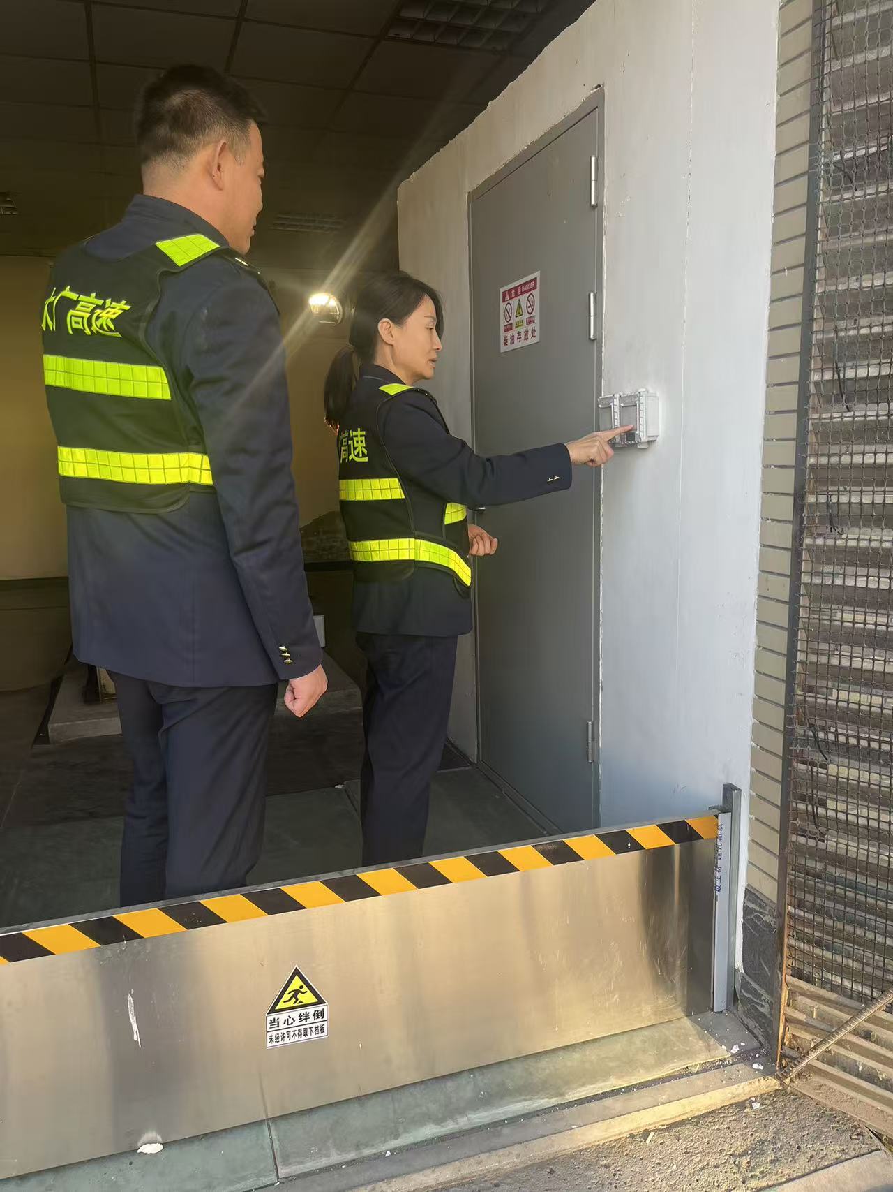 本次检查紧扣消防月主题,坚持问题导向与实效原则,推动安全要求转化为具体行动。检查小组以“零容忍”的态度,对重点部位及消防设备设施进行了全面排查:对灭火器进行逐一体检,严格核查其压力值、有效期、瓶体状况及软管完好性,确保每具灭火器均处于正常待用状态;深入办公区、收费岗亭、宿舍等场所,细致检查用电线路、设备接地等情况,坚决杜绝私拉乱接、过载运行、违规使用大功率电器等行为;在发电机房现场试运行了新增设的防爆风扇、防爆开关等设备,验证其安全性能与运行效果。