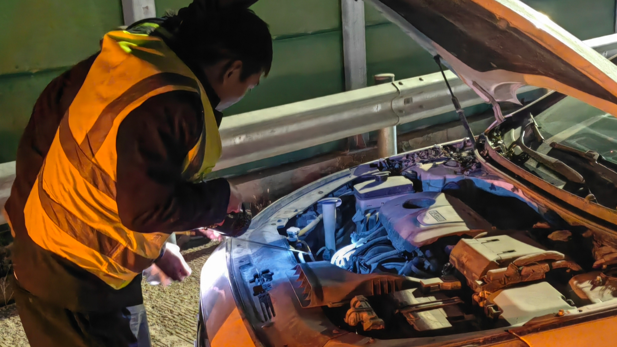 凭借丰富的车辆故障处理经验,班长初步判断车辆水温飙升是冷却系统异常、防冻液不足所致。为保障现场通行安全,当班班长首先在故障车辆后方规范摆放反光锥桶,划定安全警示区域,提醒过往车辆减速避让。随后,组织收费员快速从站内取来备用防冻液,小心翼翼地为车辆补充添加。经过一段时间的冷却调试,车辆发动机水温逐渐恢复正常,成功重新启动,故障得以顺利解决。