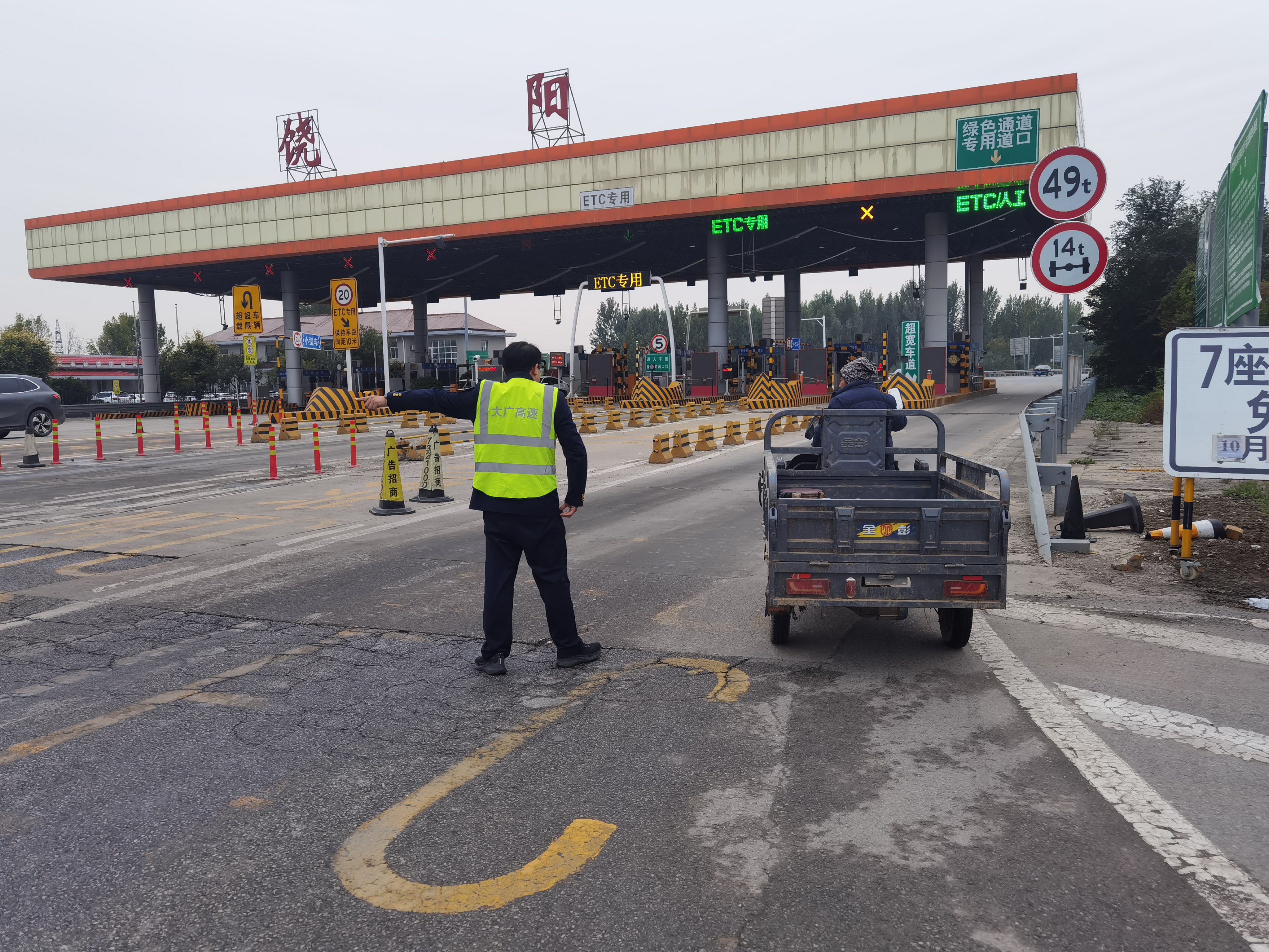 12月9日,饶阳站入口车流中,一辆电动三轮车试图驶入高速,被当班疏导人员及时发现并安全拦停,有效避免了一起潜在的安全隐患。