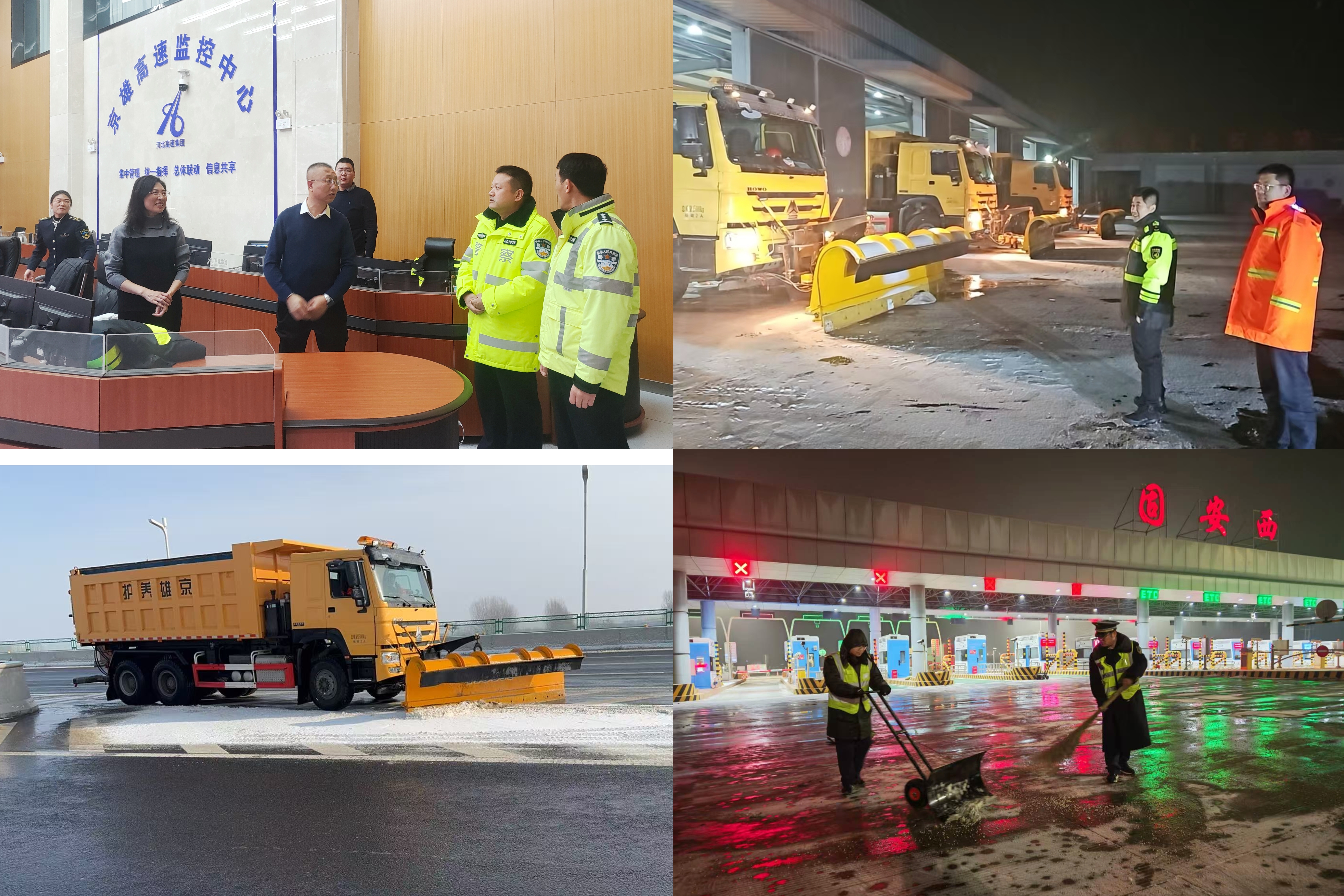 在这场除雪保畅应急战中,运营管理部、固安养护大队人员昼夜奋战,为人民群众安全出行保驾护航。指挥调度中心持续运行“重点时段现场巡查+全时段视频巡控”双保障模式,动态监测降雪量、路面通行状况及除雪作业进度,及时发布路况信息以及安全驾驶提示,实现精准调度。各收费站迅速启动应急预案,值班人员全员投入一线,争分夺秒清理收费广场、车道积雪,规范布设警示标识,确保车辆安全高效行驶。同时,积极开展延伸服务,及时为司乘提供热水、路况咨询等服务,以暖心举措履行社会责任,用实际行动诠释“以人民为中心”的服务理念。