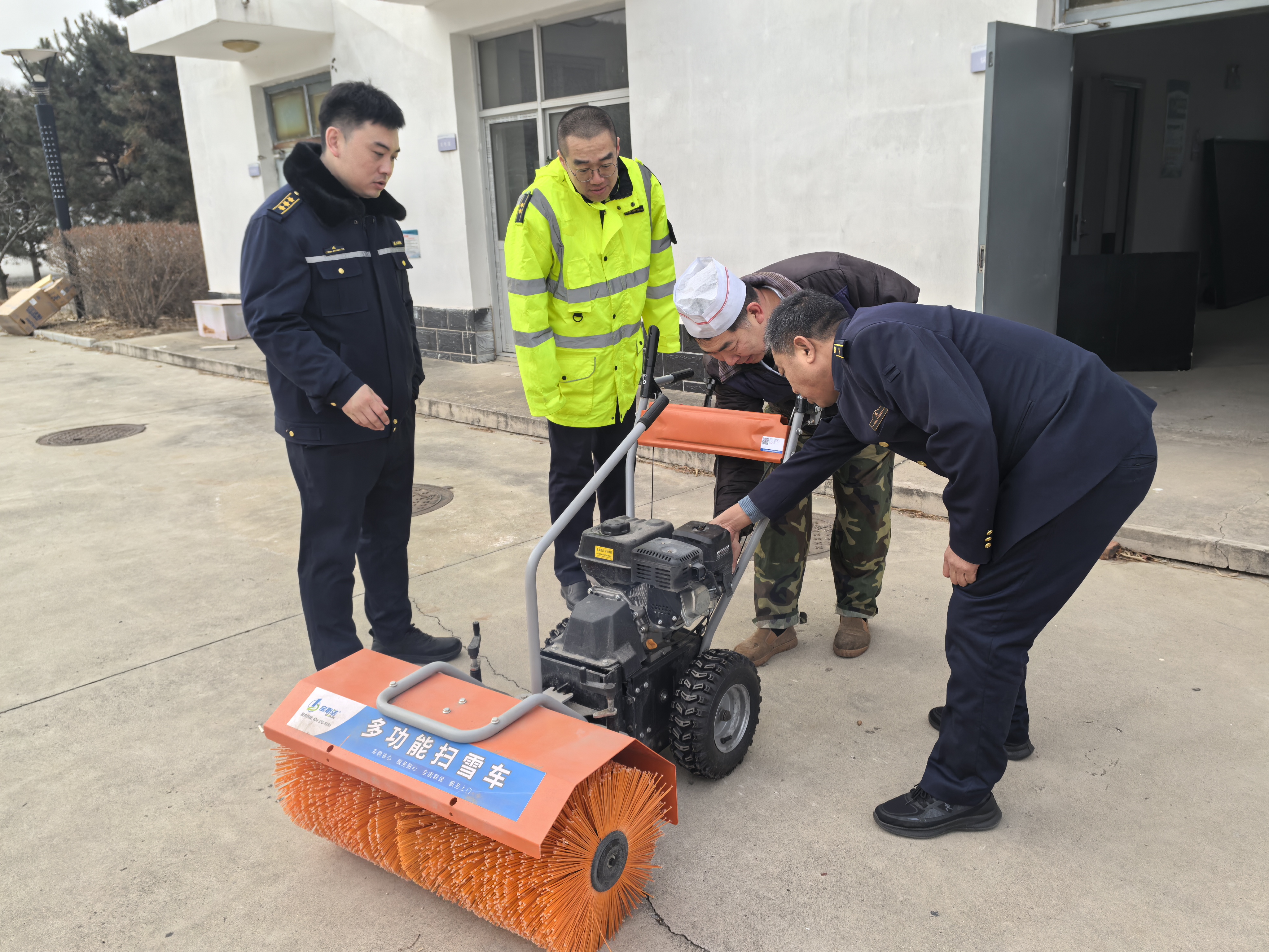 为确保应急响应迅速、处置高效,站内提前完成物资清点与补充。目前,除雪铲车已全面检修并试运行良好,处于待命状态。推雪板、铁锹、扫帚等人工除雪工具以及必要的应急后勤物资均已配备齐全,实行专人专管,建立动态台账,确保关键时期各类物资能够及时调配、供应充足。