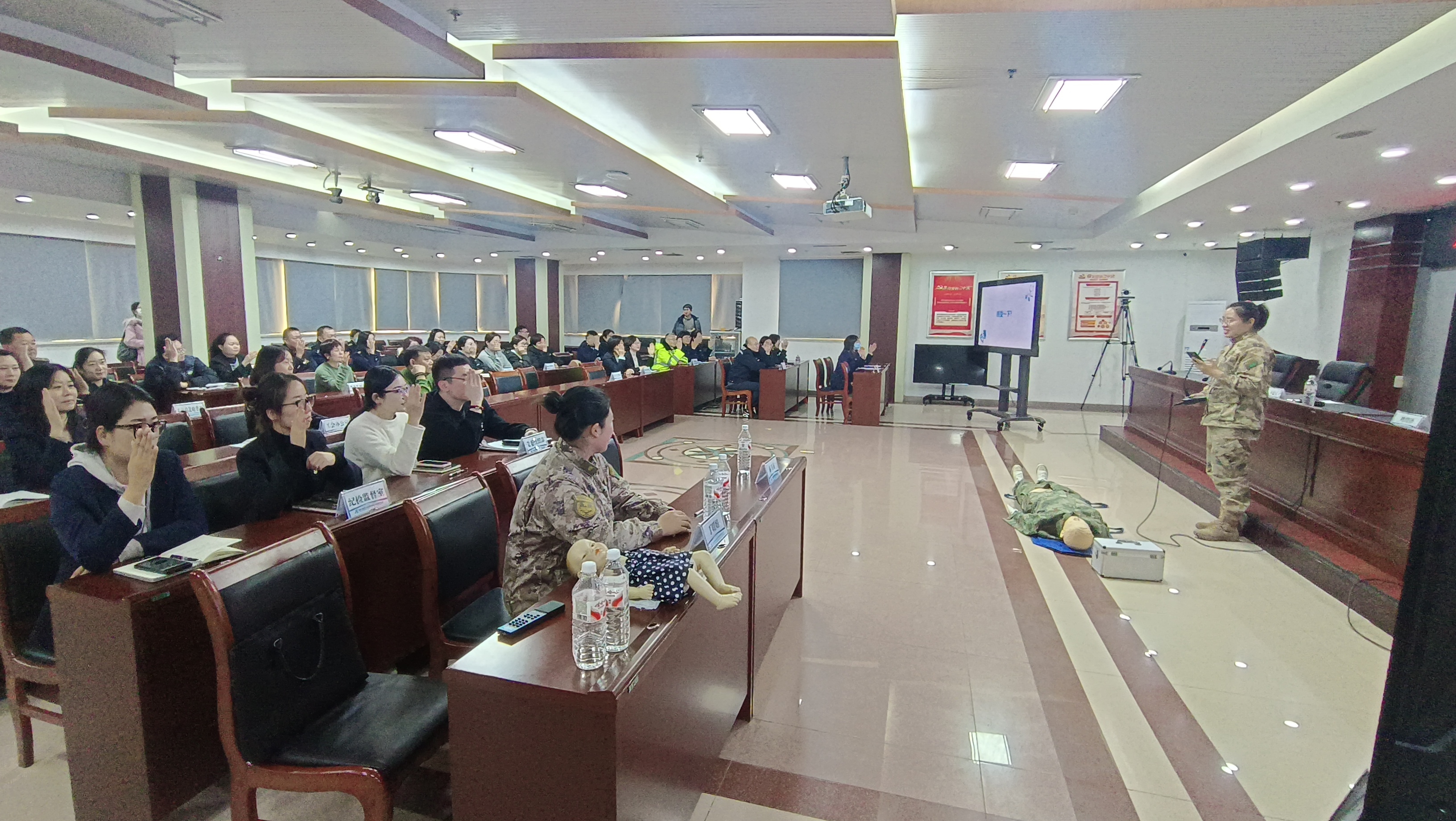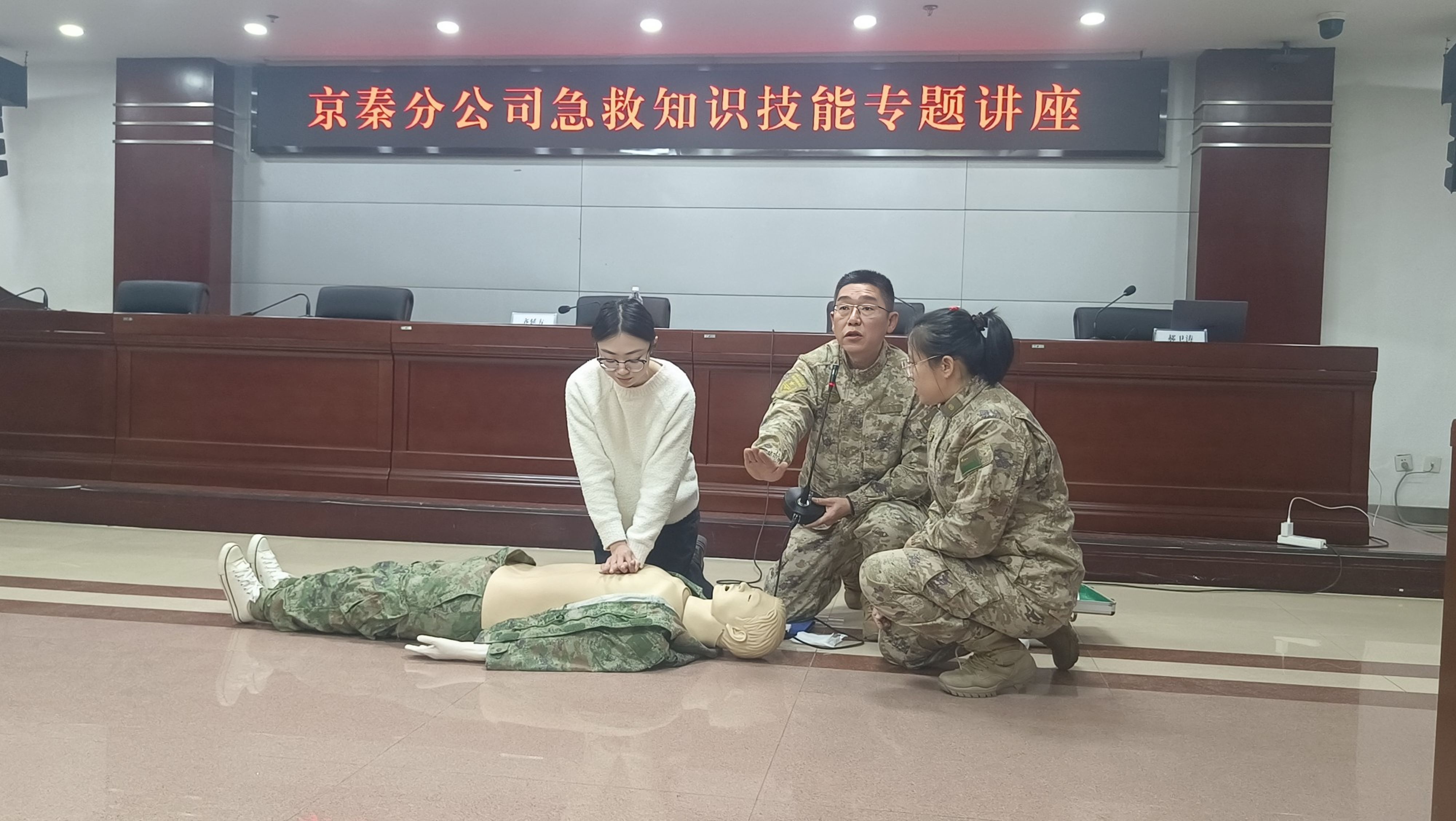 为进一步提升突发事件应急救护能力,普及急救知识与实用技巧,增强职工自救互救意识,12月17日,京秦分公司工会组织开展急救知识技能专题讲座。活动特邀联勤保障部队北戴河康复疗养中心急诊医学科专家团队现场授课,分公司党委委员、副总经理、工会主席齐延方出席,总部各部室、各分会负责人及职工代表共计80余人参加。