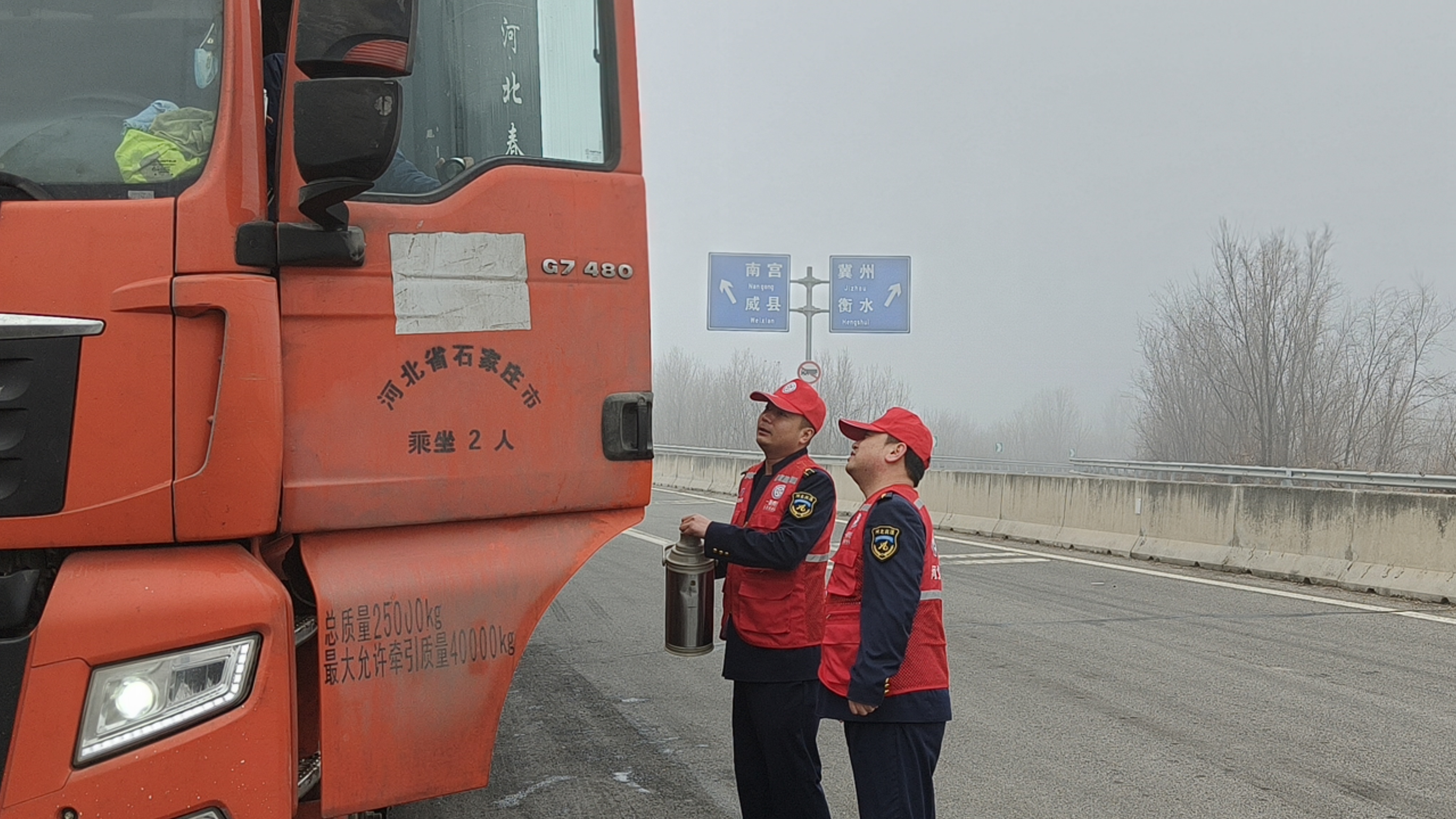 二是延伸服务范围,传递冬日温暖。员工主动走进收费广场,为滞留司乘提供食物和饮用水,同时耐心安抚情绪,提醒雾天行车安全注意事项,用实际行动为司乘人员送去关怀。