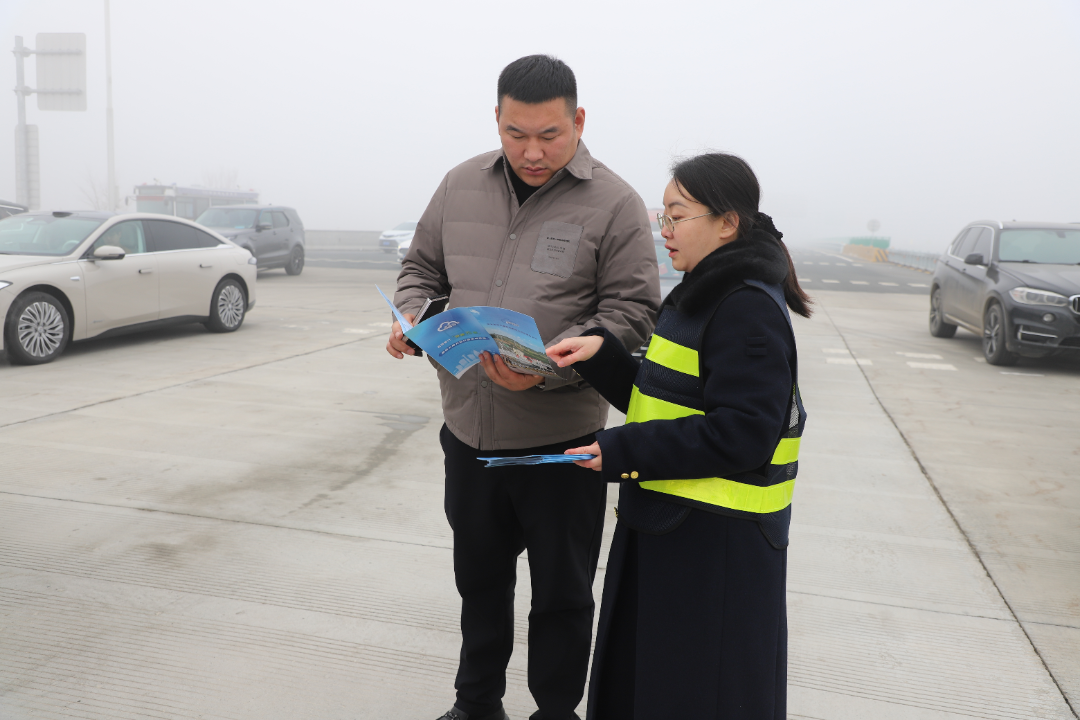大广分公司尚村收费站迅速行动,第一时间组织“一路同行”志愿服务队分工协作,穿梭在车流中,逐车为司乘送上热水,实时向司乘播报路况信息。
