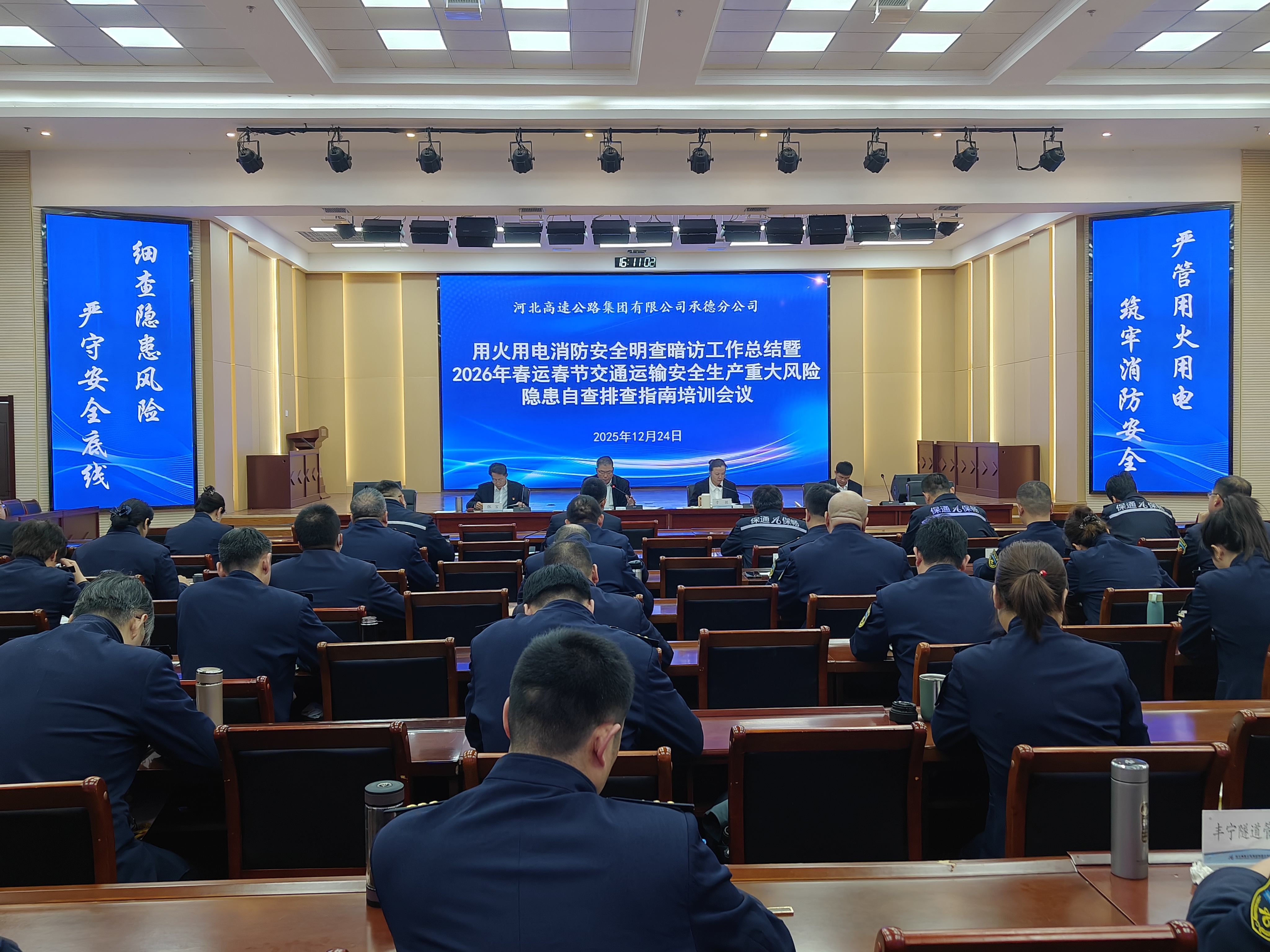 12月24日,承德分公司组织召开用火用电消防安全明查暗访工作总结暨2026年春运春节交通运输安全生产重大风险隐患自查排查指南培训会议。总经理侯运芳,党委委员、副总经理于颖,副总经理张言、许立华,总部相关部室及所属各单位主要负责人参加会议。
