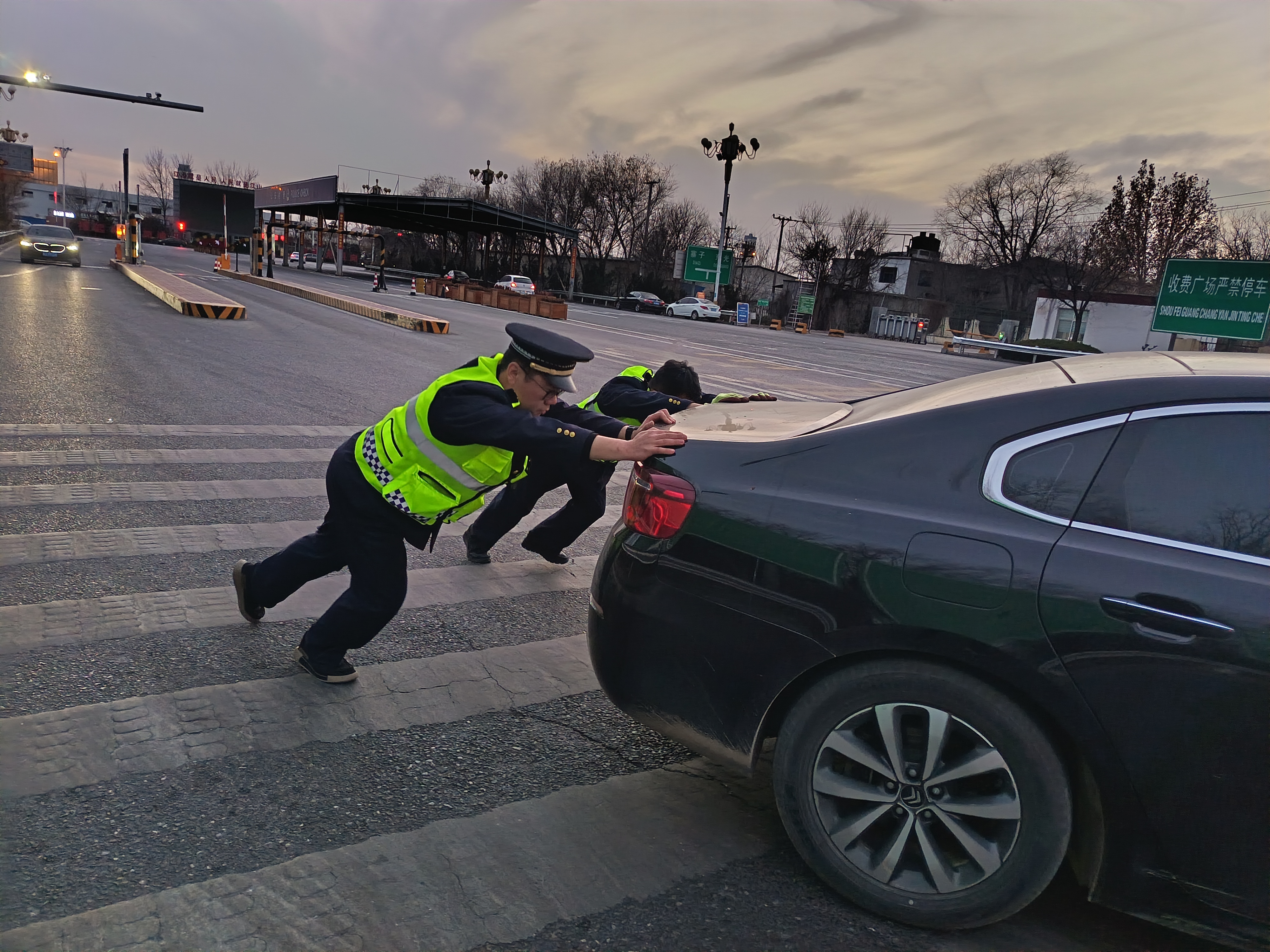 当天,一辆小型轿车驶入东光收费站入口车道时,突然发生故障骤停。驾驶员尝试挂挡挪动车辆未果,焦急万分却束手无策。恰逢梁华刚巡查至此,见状立即上前询问情况。了解到车辆因亏电无法启动后,他迅速呼叫当班班长前来支援。随后,俩人齐心协力,将故障车辆推至入口广场安全区域,避免对站口通行造成影响。随后,梁华刚又迅速取来站内的强启器,熟练地为车辆进行强启操作。片刻之后,车辆成功启动。