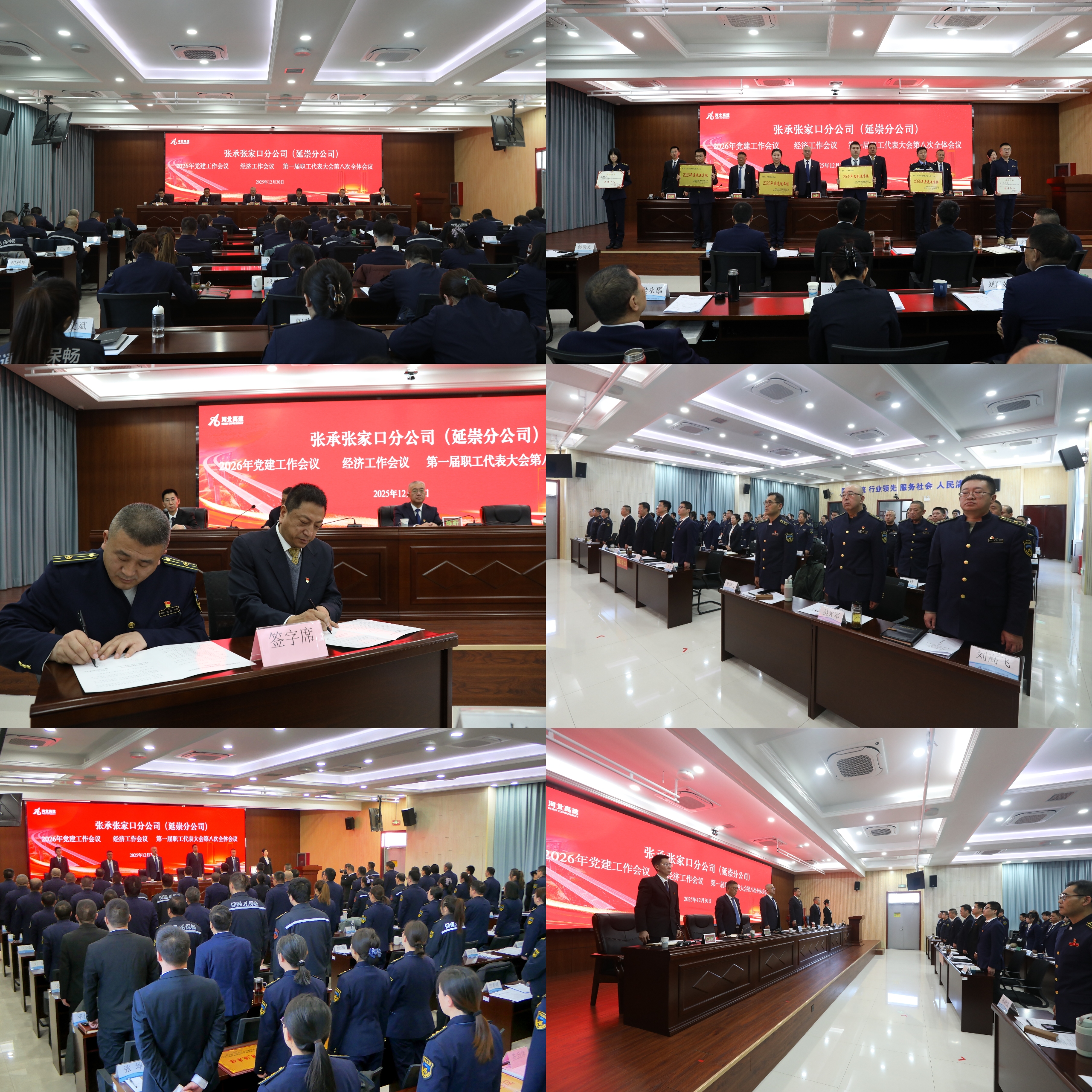 12月30日,张承张家口分公司(延崇分公司)召开了2026年党建工作会议、经济工作会议、第一届职工代表大会第八次全体会议,分公司领导班子成员,第一届职工代表大会代表,各部室、各单位相关负责人共90人参加会议。