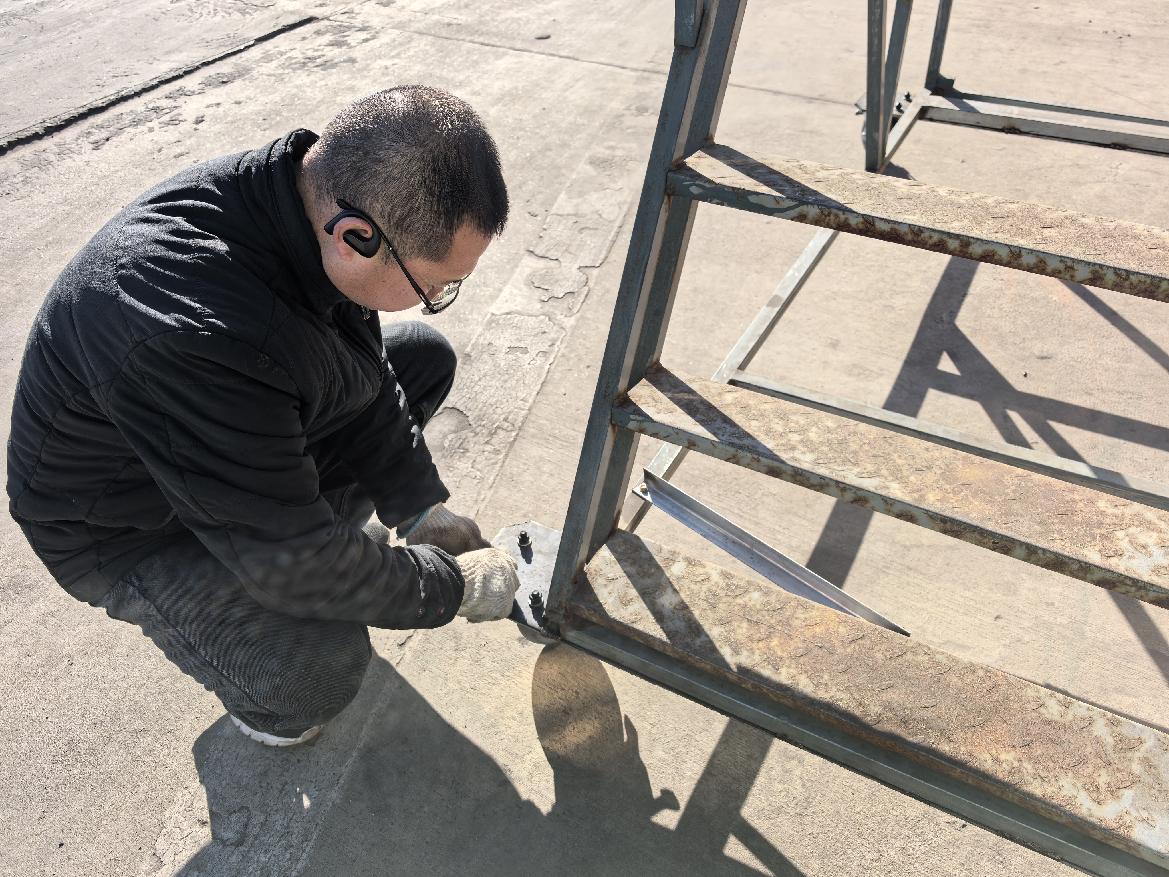 绿色通道验货梯作为收费人员登高查验绿通的重要设备,其安全性、稳定性直接影响通行效率与作业安全。原有设备在使用中存在支撑不稳定且更换脚轮不方便的问题。面对这一环节,榛子镇收费站并未简单向上级“等、靠、要”,而是主动攻坚克难,对梯子的底座关键部位进行了加固与优化,重新设计了支撑结构。整个改造过程注重成本控制,力求以最小的投入解决最大的问题。改造后的梯体结构牢固,稳固性明显提升,为收费人员提供了更可靠的作业平台。另外,外露的脚轮设计,使日后维修更换脚轮更便捷。