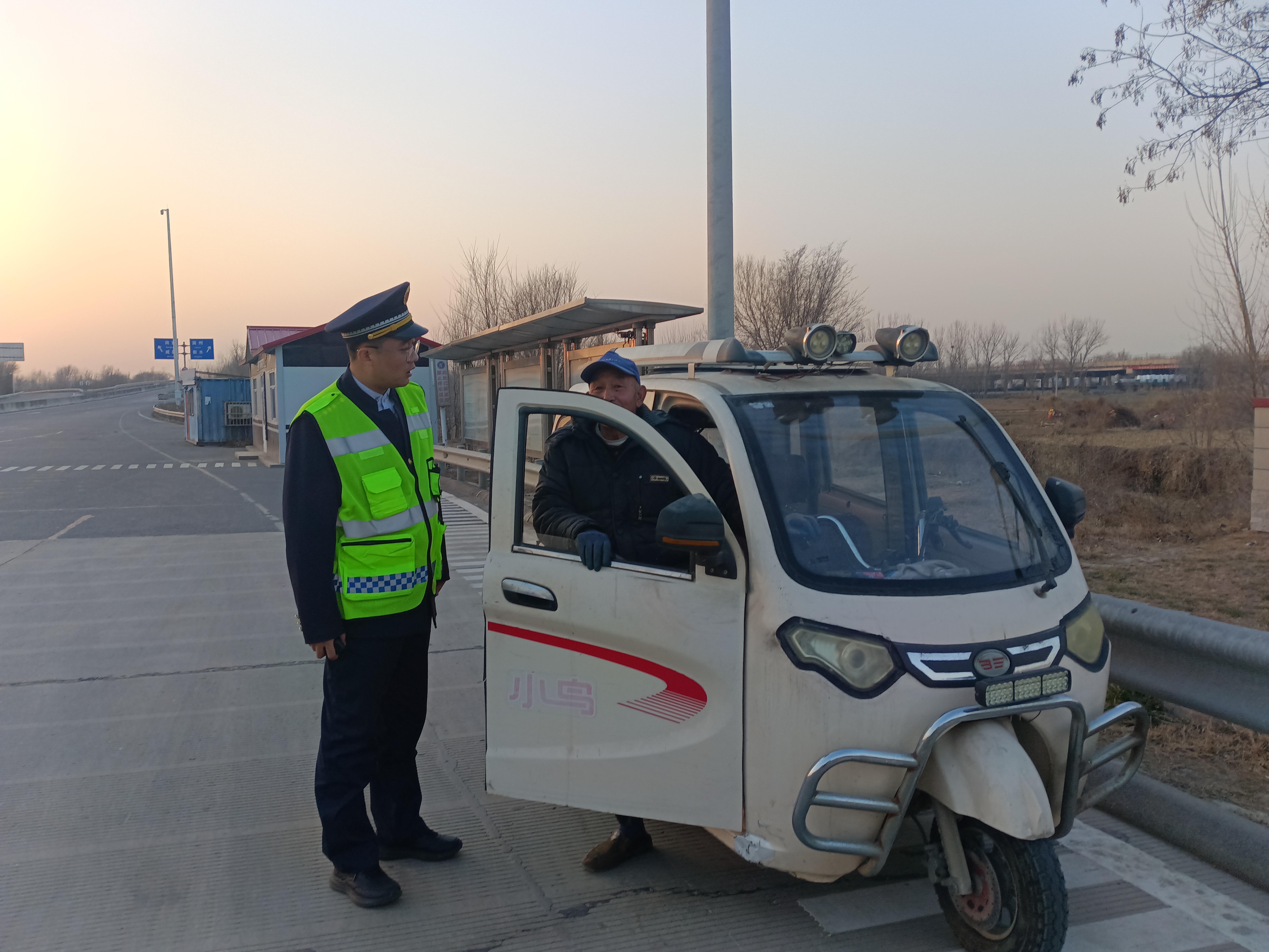 经询问得知,驾驶三轮车的是一位当地村庄的老人,因天色渐晚、方向辨认不清,不慎误入高速公路。班长一边安抚老人情绪,一边耐心为其指明正确的回家路线,并细致讲解高速公路禁止非机动车和行人通行的相关法规。老人听后恍然大悟,连连道谢,并对收费站工作人员高度负责的态度表示由衷赞许。