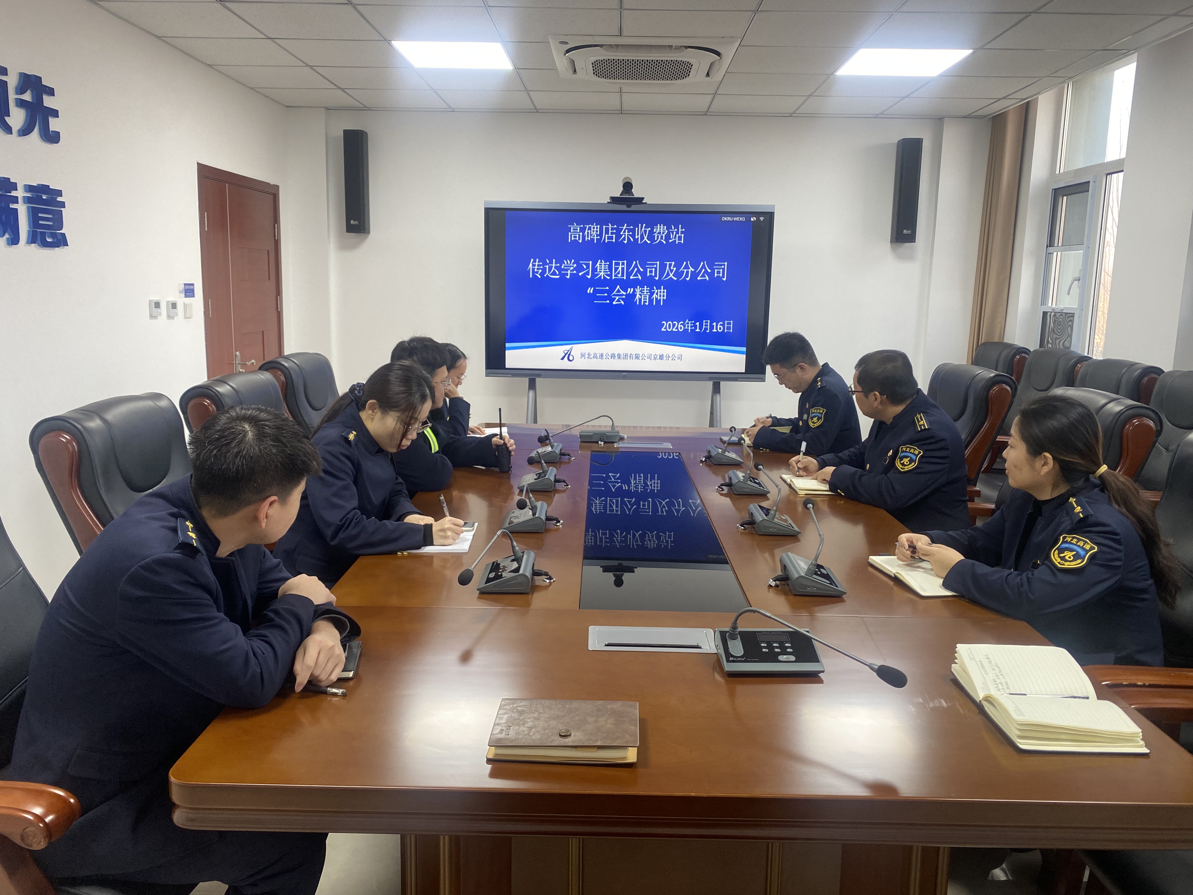为深入贯彻落实集团公司及分公司“三会”精神,统筹推进2026年度重点工作目标落地,高碑店东收费站分批次组织开展专题宣贯会,全面传达学习集团公司和分公司“三会”精神,并结合收费站实际对重点工作作出系统部署。