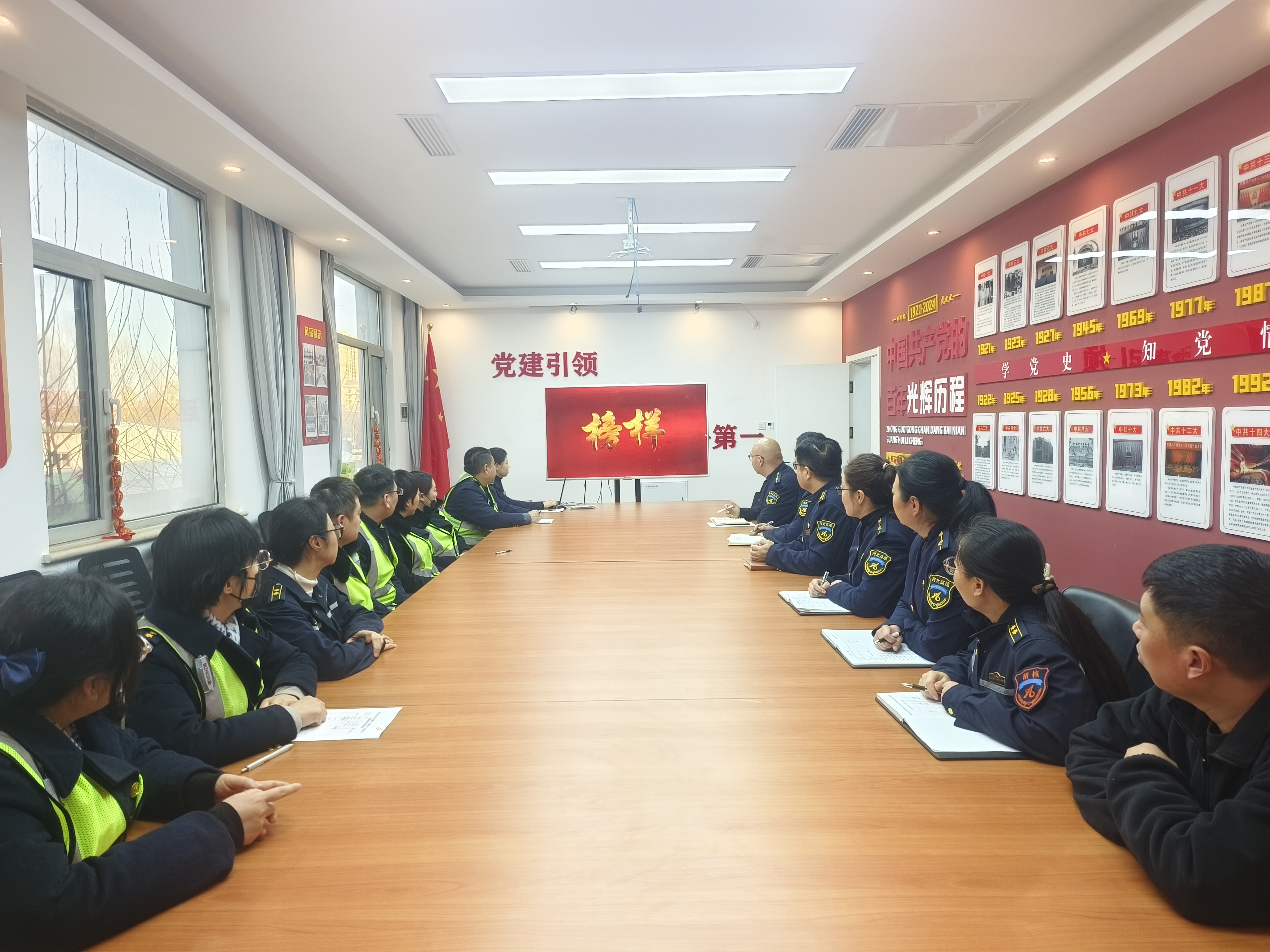 1月21日,香河东收费站党支部组织全体在岗职工集中观看《榜样10》专题节目,通过学习先进典型事迹,将榜样力量转化为提升收费服务、保障站口畅通的实际行动。